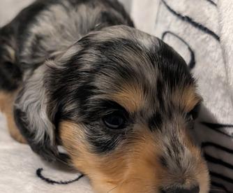 Gloria was great with communication and sending pictures of the puppy every week up until he could be picked up. She kept me up to date with everything. Very responsive and helpful with every question I asked. Our pup Jasper is doing awesome and is very loving and well mannered. We love this little guy and so do my other minis that I have which are 10 and 13.