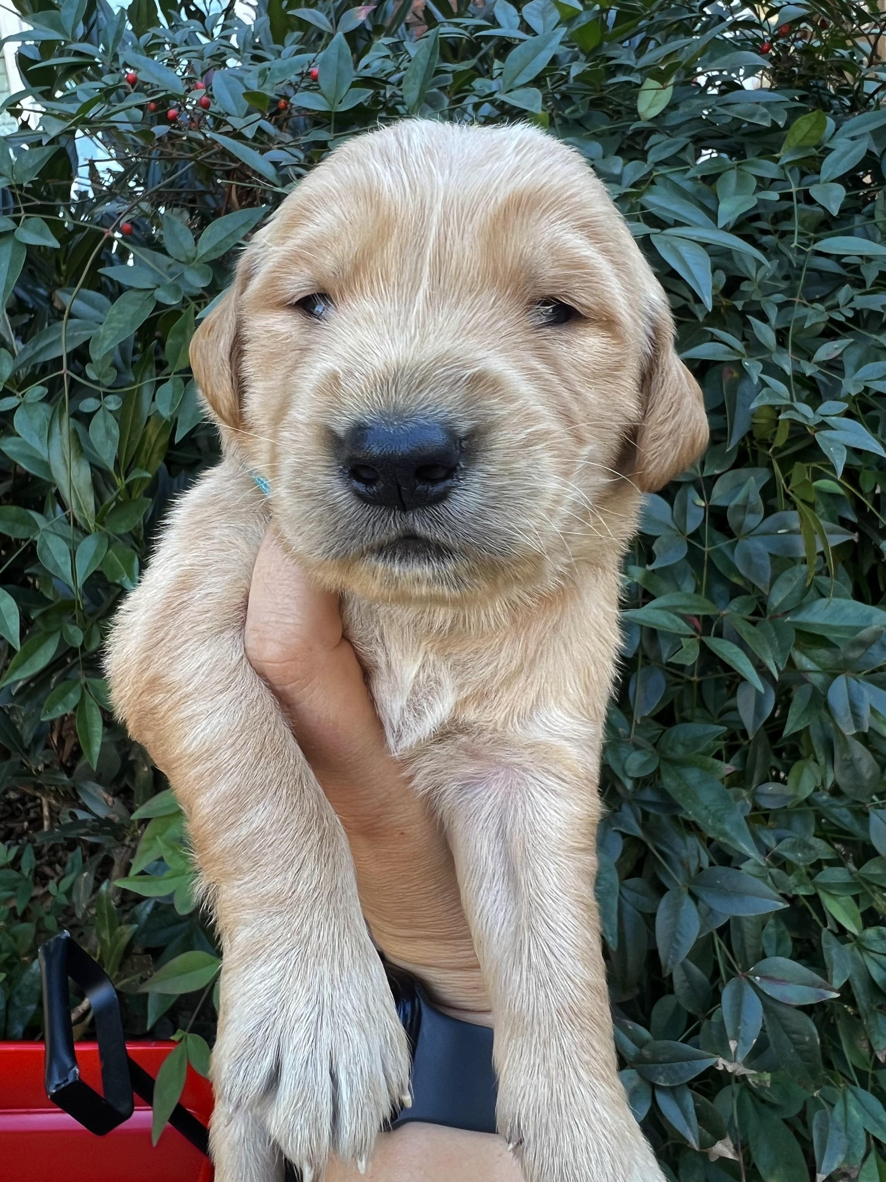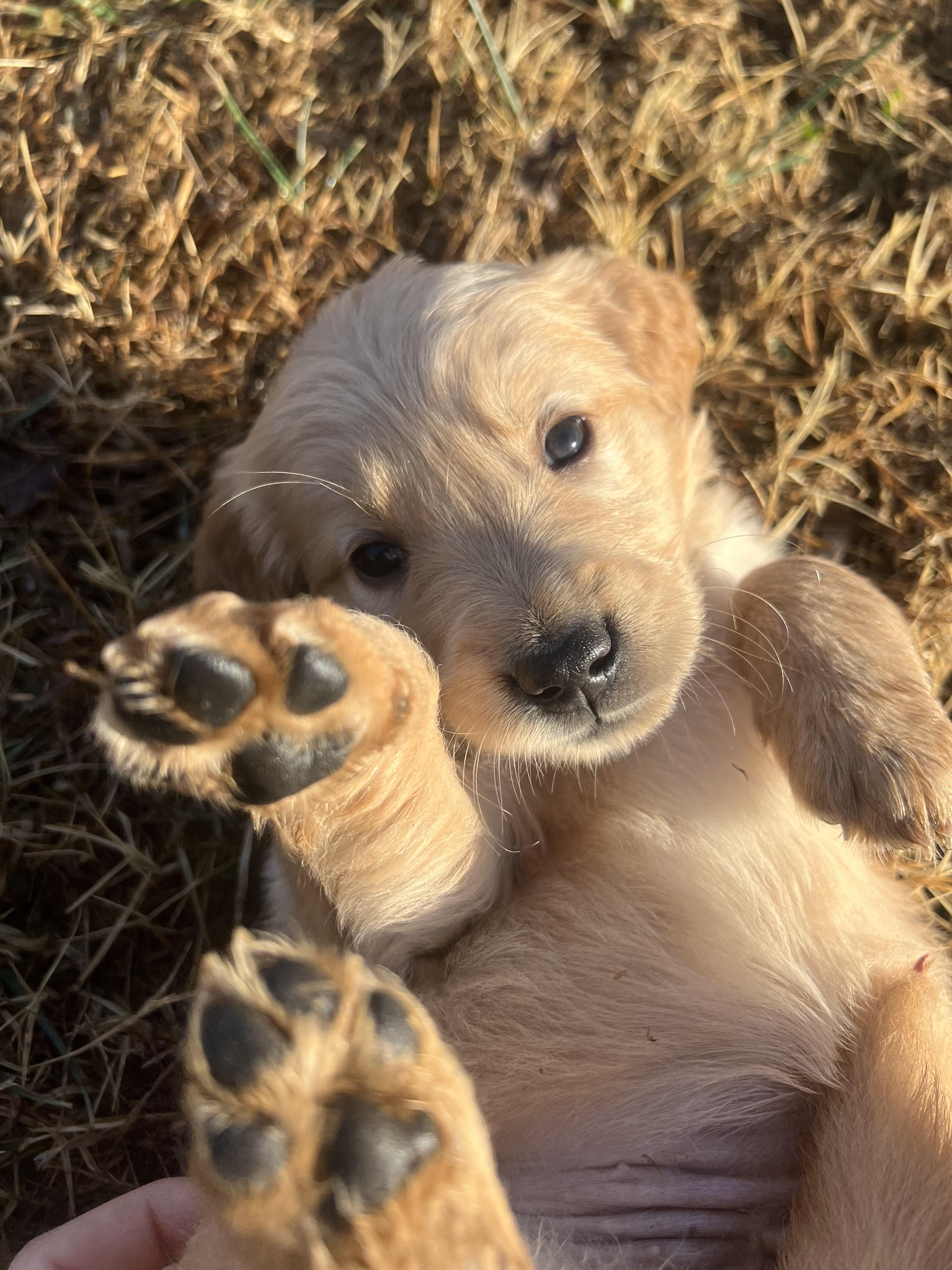 ⭐️⭐️⭐️⭐️⭐️ We had a truly wonderful experience with Nicole from Bunn Ranch Goldens. From the very first inquiry, she was responsive (getting back to us within 2 hours!) and open to answering all of our questions. She even set up a FaceTime call so we could meet our puppy beforehand, which helped us feel confident in making the 12-hour drive to bring home our boy, Jax. Nicole made the pickup process incredibly smooth. She sent us home with a generous supply of kibble to get us through until ours arrived and provided us with Jax’s shot records. She also checked in on us after we brought him home, which we really appreciated. Jax was just shy of 8 weeks old when we got him and now at 14 weeks, he’s grown from 7 pounds to 19 pounds! Thanks to Nicole’s early crate training, the transition went smoothly—he had some expected bumps but adjusted quickly. What’s been especially rewarding is how well-socialized and food-motivated he is. He loves kids and other dogs, and that’s a direct result of the strong early socialization Nicole provides. We can tell Nicole genuinely cares about the dogs she raises—she’s professional, thoughtful, and clearly experienced. If you're considering one of her puppies, we wholeheartedly recommend her!