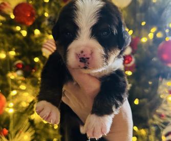 Our Golden Retriever puppies include dark golden, golden, and light golden. Bernese Mountain Dog puppies are black rust and white. Colors will vary depending on the parent dogs.