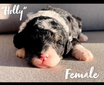 Ruby is a female Bernedoodle. Carefully selected as a great representative of her breed, Kalei decided to make her part of their program. Kalei has passed Good Dog’s screening process, which involved a review of their breeding practices, environment, and the mental and physical health of their dogs.