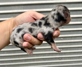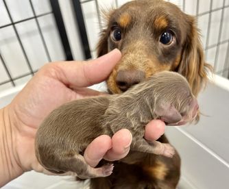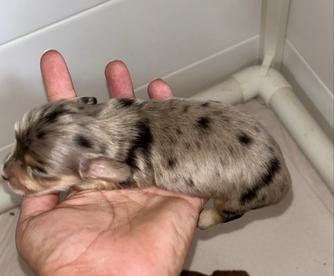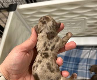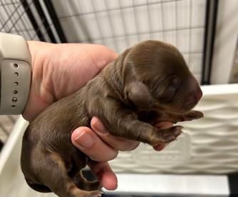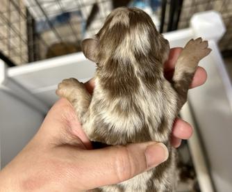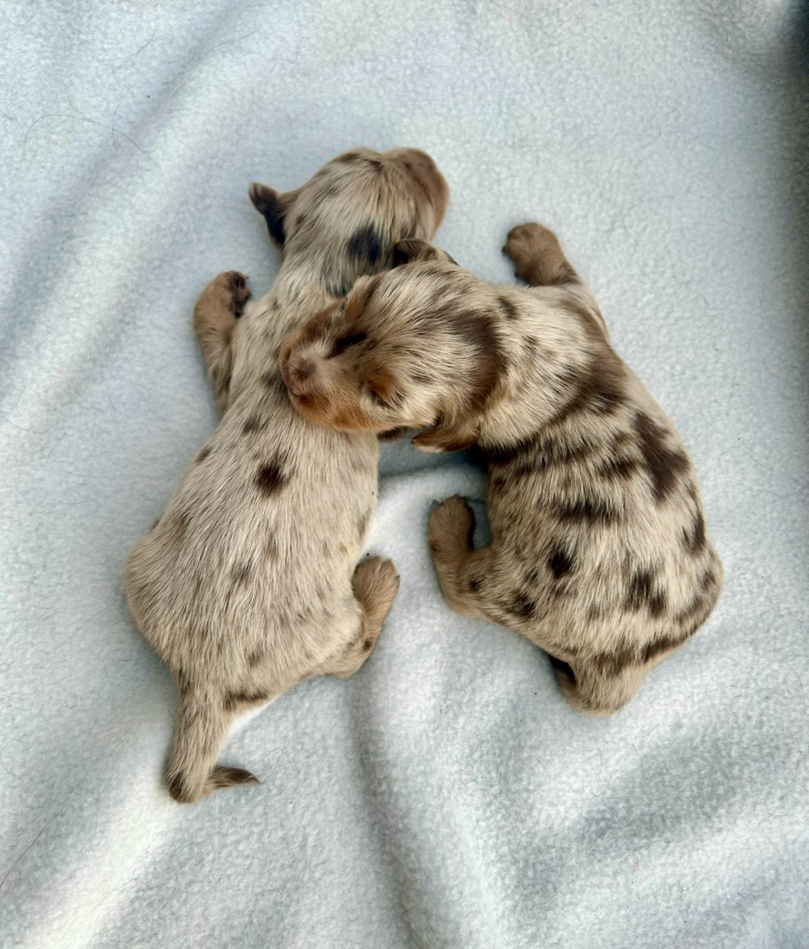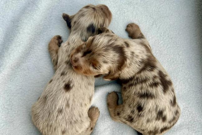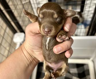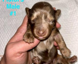 Our puppies include piebald, cream, chocolate, chocolate and tan, chocolate and cream, black and tan, and dapple. Colors will vary depending on the parent dogs.
