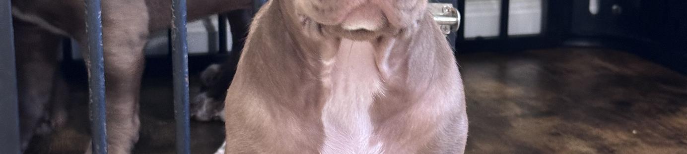 Valkyrie is a female American Bully. Carefully selected as a great representative of her breed, Gregg decided to make her part of their program. Gregg has passed Good Dog’s screening process, which involved a review of their breeding practices, environment, and the mental and physical health of their dogs.
