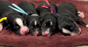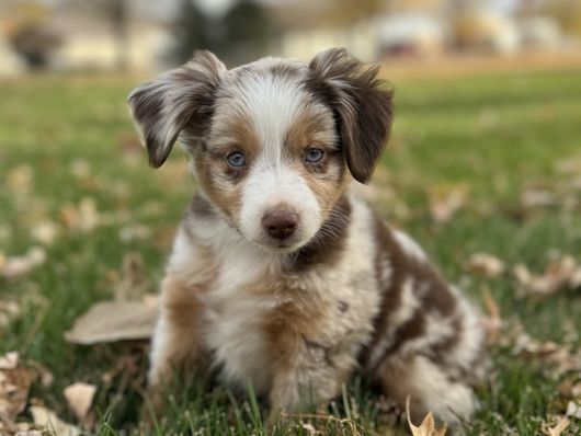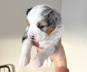Our Australian Shepherd puppies include red merle, blue merle, black tri-color, and red tri-color. Colors will vary depending on the parent dogs.