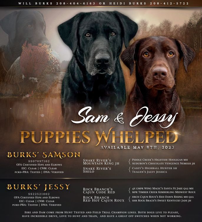 I'm Will B., the breeder behind Burks Retrievers located in Boise, ID. I’ve spent my life with Labrador retrievers and am active in AKC and UKC retriever training clubs. My dogs are the product of good pedigrees and training. These beautiful puppies are loaded with natural ability.