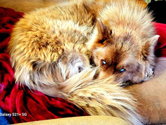 KoaKoa is a gorgeous dark brown solid wooly with beautiful blue eyes. Shes talkative and so much fun and we love her so much. She sleeps next to me every night.