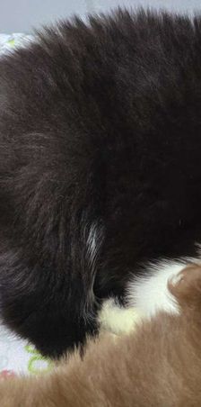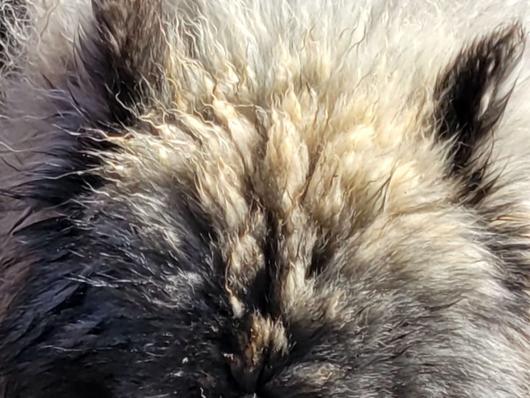 Khalua is a black and white extremely wooly female. She's the sweetest, most gentle and loving girls ever. She's so passive and just wants to curl up on your lap. She loves to play ball and she will throw it to herself for hours lol. She got that from her momma.