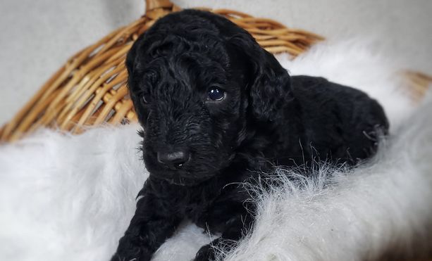 Our Goldendoodle puppies include cream, red, chocolate, black, phantom, merle, and parti. Colors will vary depending on the parent dogs.