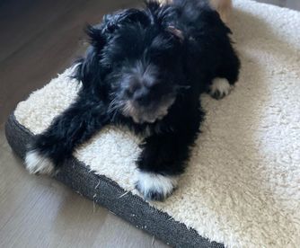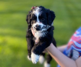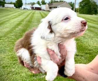 “All puppies are raised in my home. They're well socialized with children and other pets. We worm at 2, 4, 6, and 8 weeks, and provide first vaccinations at 6 weeks with a full vet clearance exam. A non-refundable minimum deposit is required to hold your puppy. Refunds are only permitted if something happens to the puppy or it's determined by the breeder, the puppy is not fit for adoption.”