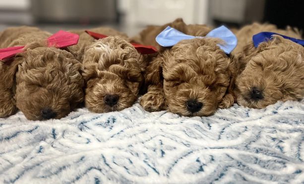 Our Aussiedoodle puppies include toy and mini sizes. Miniature Australian Shepherd puppies are miniature size. Goldendoodle puppies include petite and miniature sizes. Sizes will vary depending on the parent dogs.