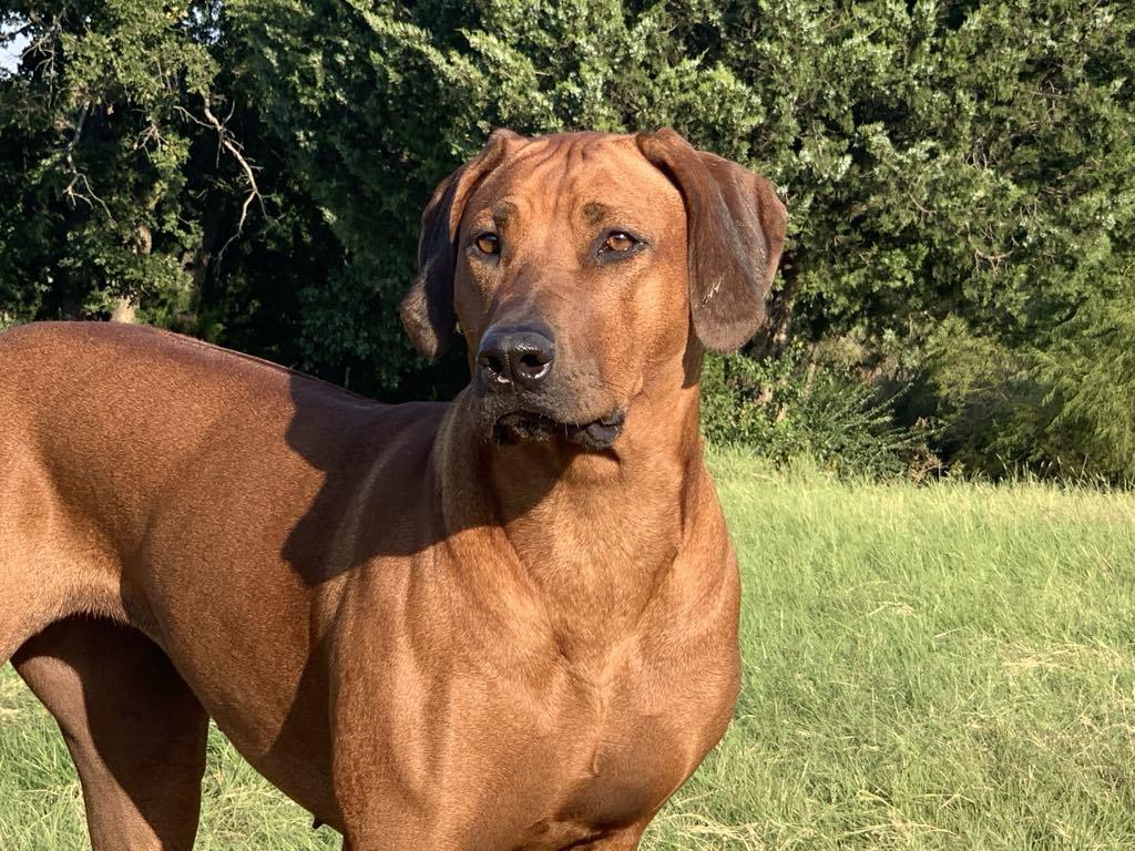 I'm Loree D., the breeder behind Bushveld Rhodesian Ridgebacks located in Aubrey, TX. Behind every well-bred Ridgeback is a dedicated breeder. Bushveld Rhodesian Ridgebacks is no exception. My husband, Mark, and I are the faces behind our dogs. Our love of Rhodesian Ridgebacks goes back to 2009 when we got our beautiful Leo, who is also the sire of this litter. We are small family breeders, who strongly believe in quality over quantity and health testing as recommended by the American Ridgeback club, RRCUS. Our dogs have the finest European and South African pedigrees and are rich in color with wonderful temperaments.
