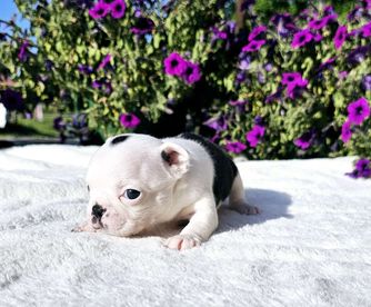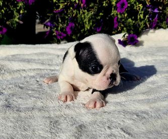 Our puppies include seal and white, black brindle and white, and black and white. Colors will vary depending on the parent dogs.