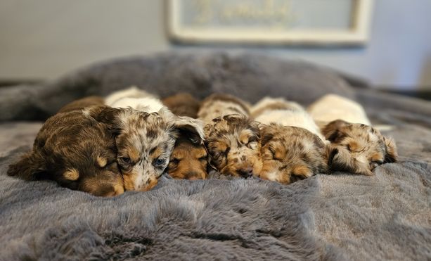 Our puppies include piebald, red, chocolate and tan, and dapple. Colors will vary depending on the parent dogs.