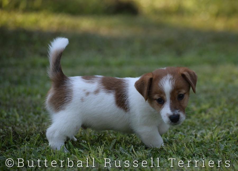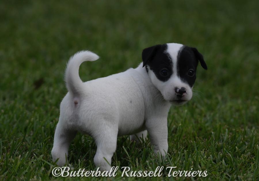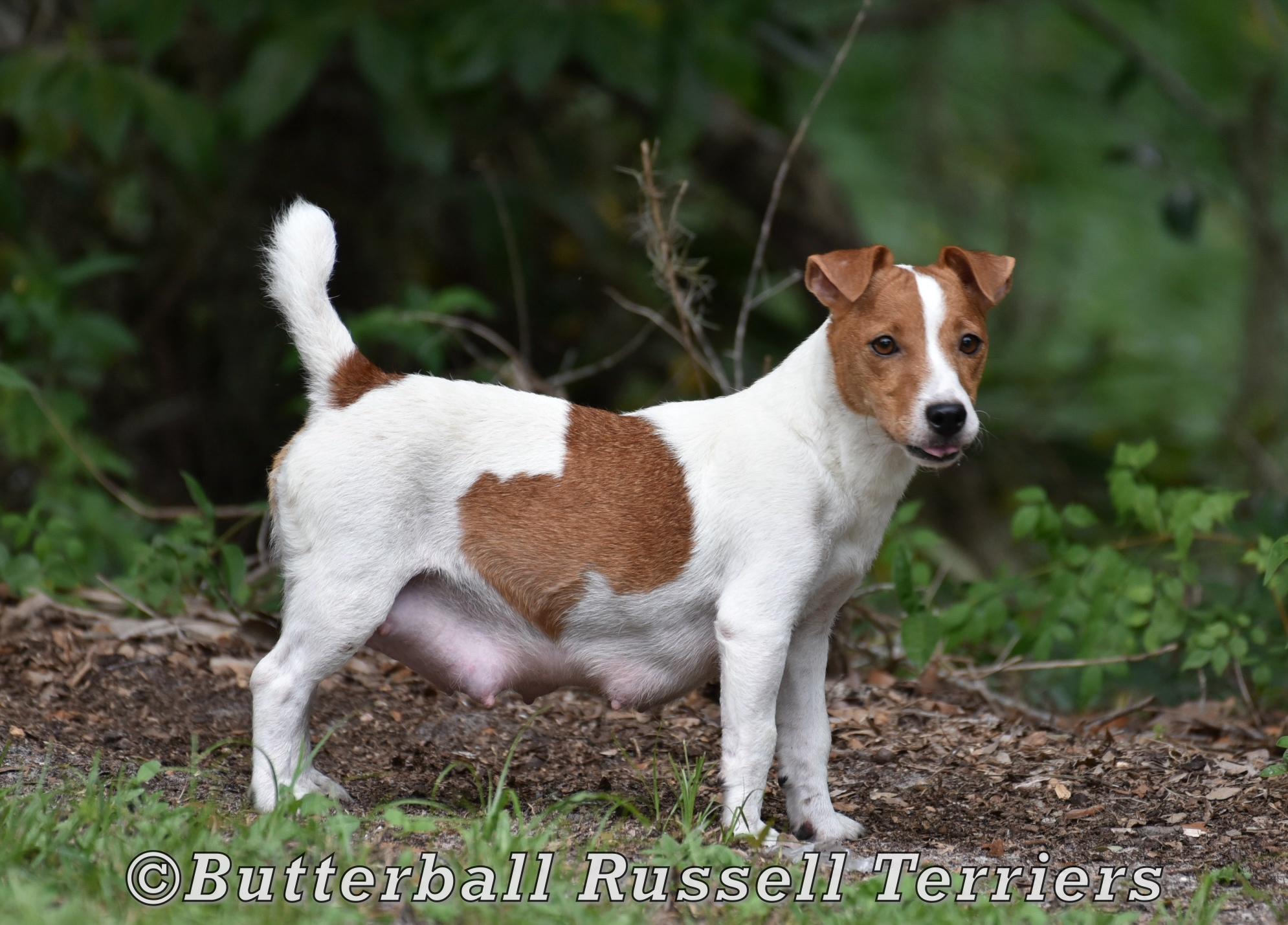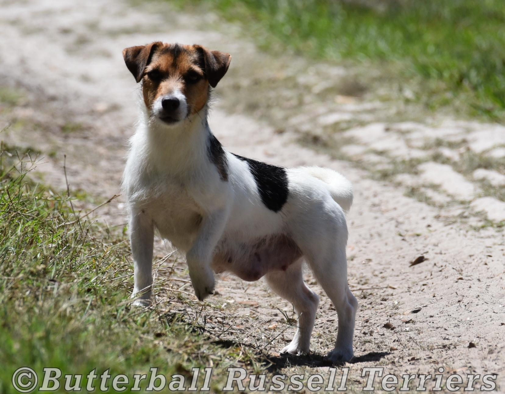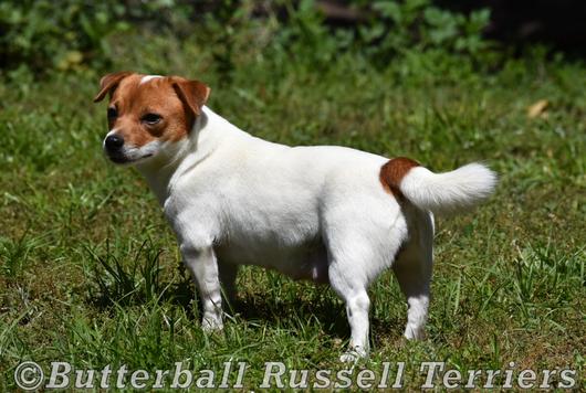 Dice is an outstanding stud born and raised here at Butterball. His sire is an imported male from a top russell breeder in France. We showed him here in the USA to his AKC Grand Champion title. Dice is a wonderful example of a quality smooth coat Russell Terrier.