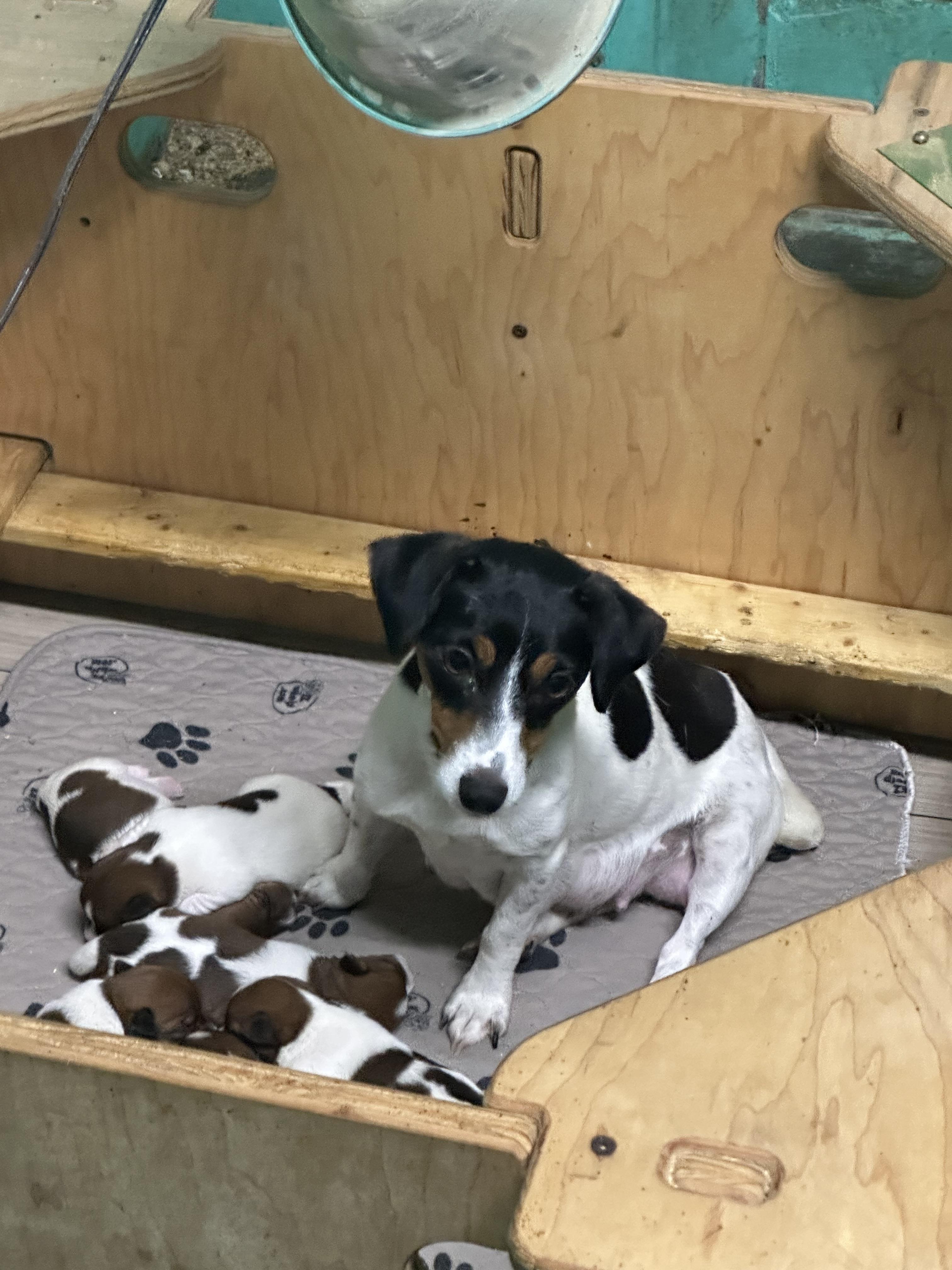 Chipper is an amazingly sweet female and produces puppies that take after her. Her bloodlines go back to some of the greats in the Russell terrier world!