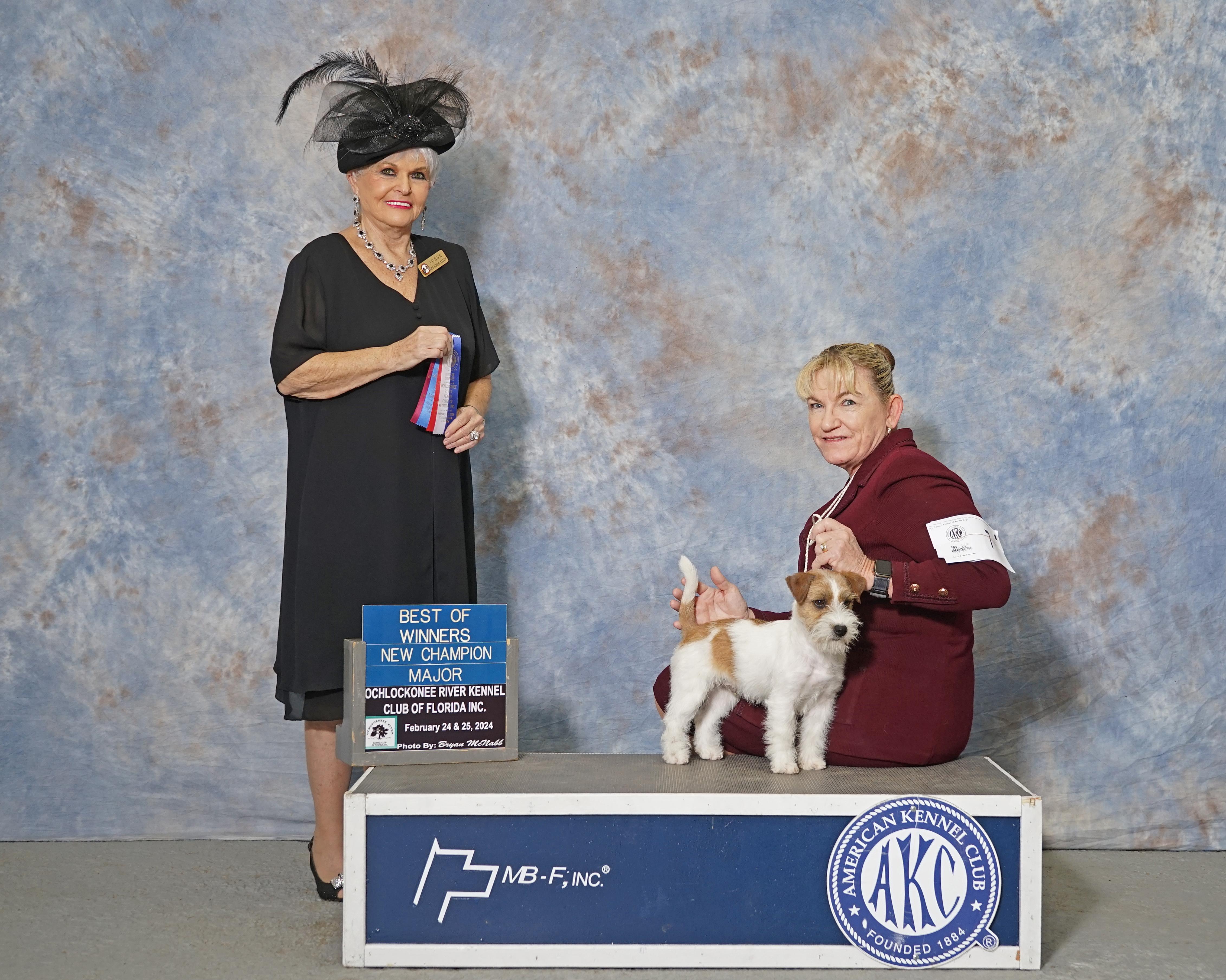 I'm Jodi G., the breeder behind Butterball Kennel located in Citra, FL. Butterball began when a horse crazy teenager brought home a cute little pup from a horse show one day. This pup was not registered because the breed had not yet become an official breed here in the United States but she was called a Russell Terrier. That was the beginning of what would become Butterball Farm and eventually Butterball Kennel. Our home was attached to our horse barn through a walkway and one day a decision was made to remodel the barn. Beautiful indoor dog accommodations were built along with a nursery to raise pups safely. Surveillance cameras throughout our kennel & nursery provide the ability to watch our dogs & puppies from our home or anywhere.