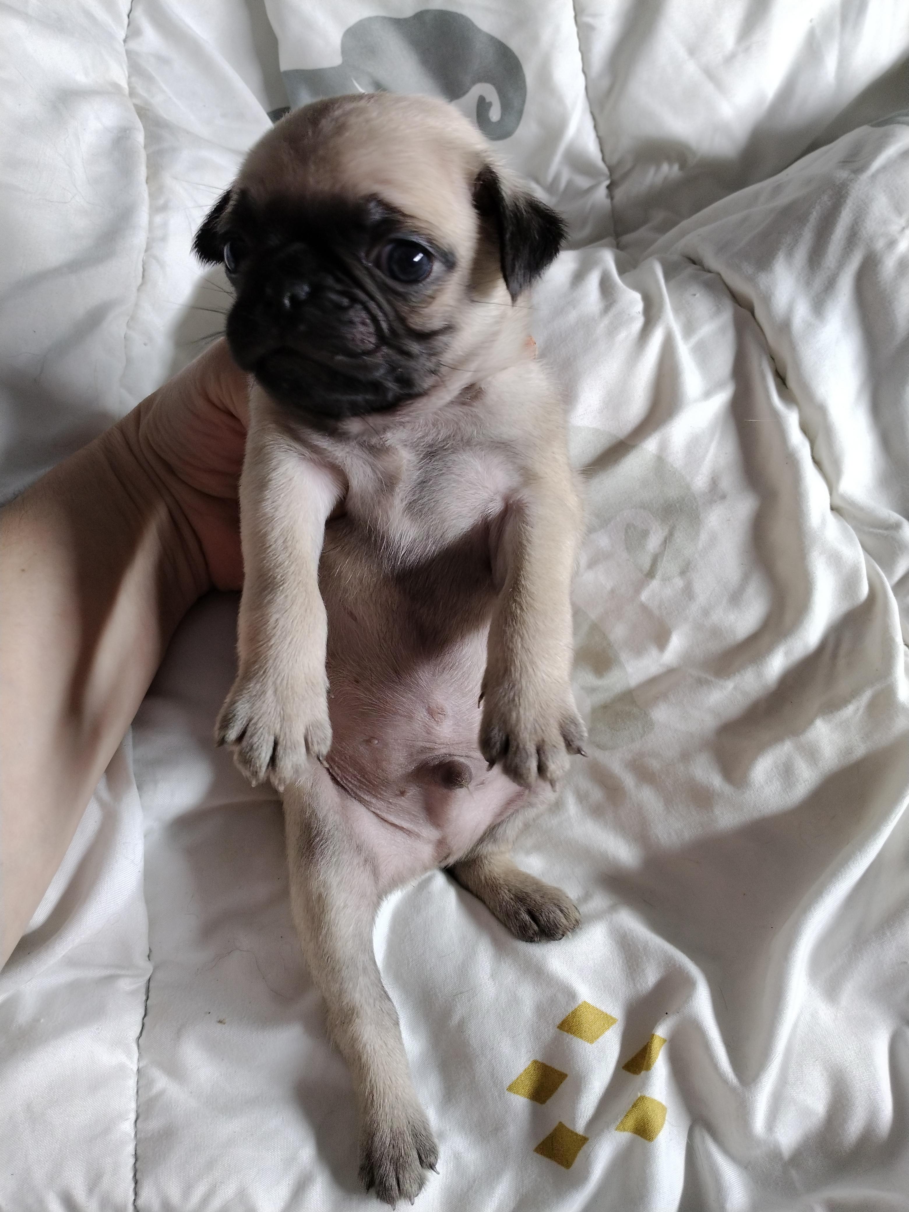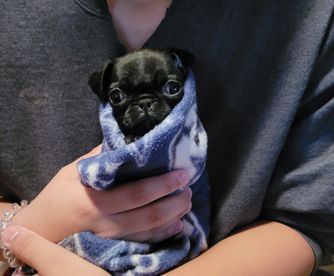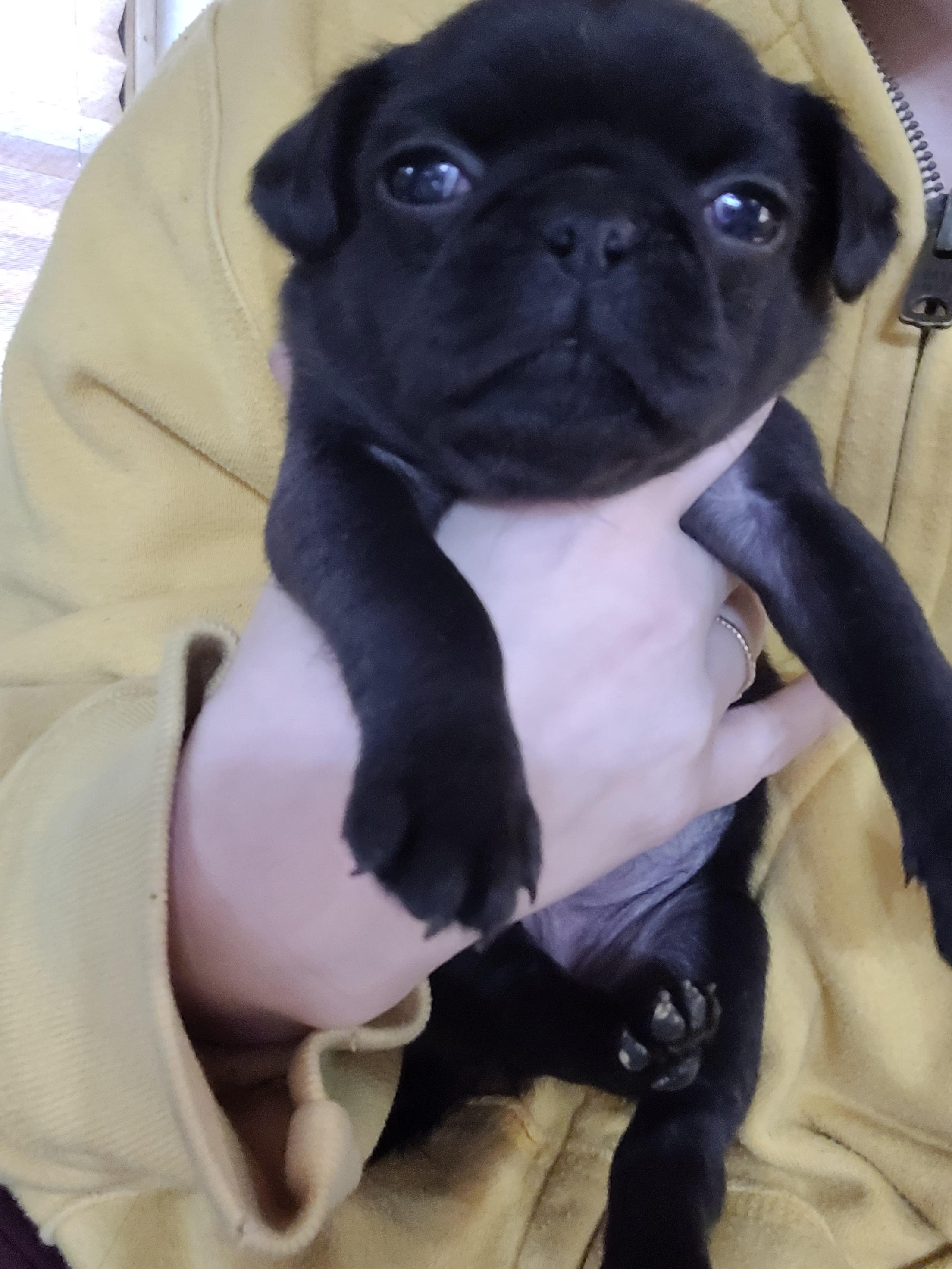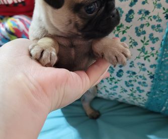 I got my Rosie from Button Maker Farms last week and she is such a little cuddle bug. Brittney is very passionate about raising healthy puppies and my puppy proves that she is. Rosie came almost completely litter box trained and socialized to other dogs and children. I definitely recommend her to anyone who is looking for healthy, happy pugs!