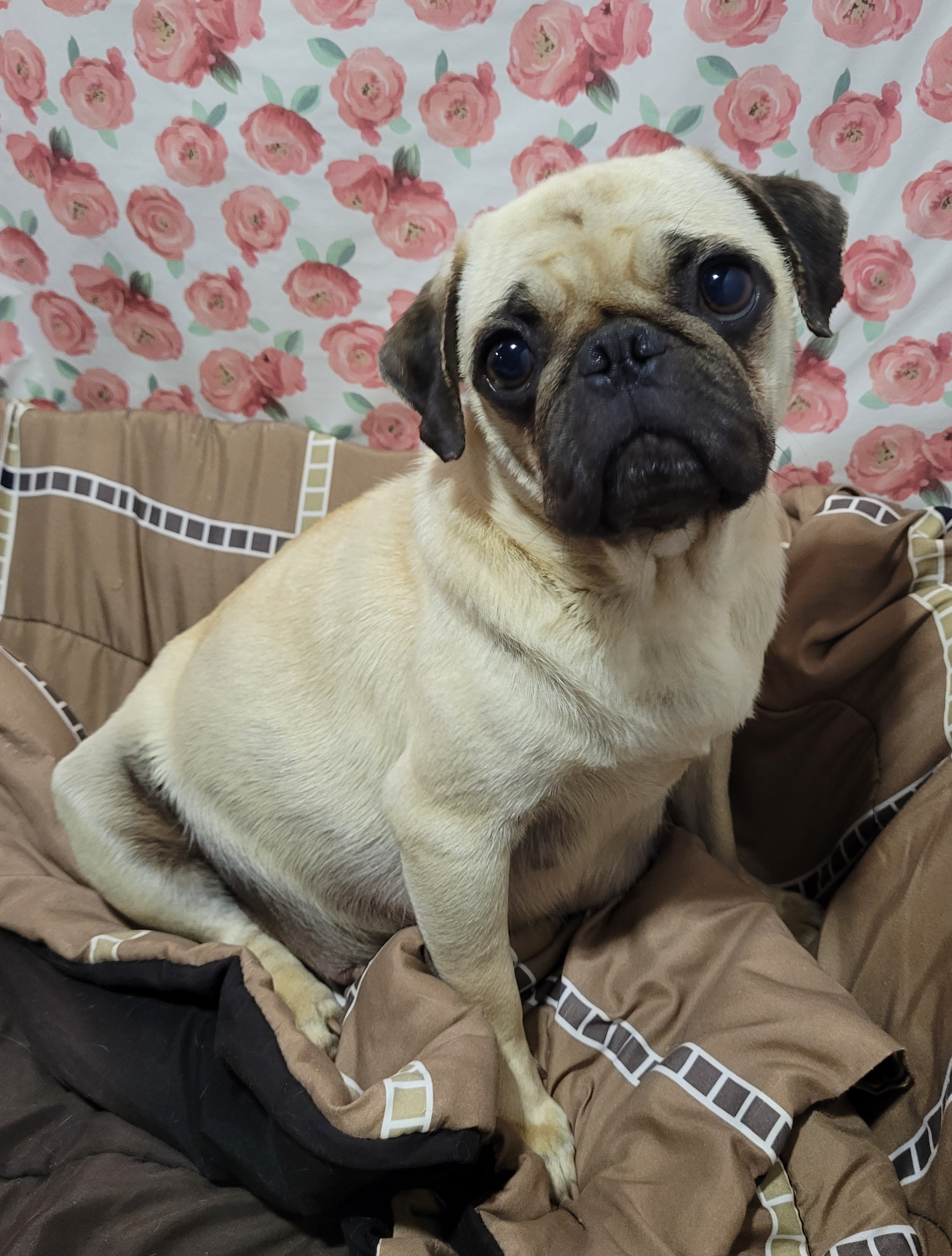 Gooby is a male Pug. Carefully selected as a great representative of his breed, Brittney decided to make him part of their program. Brittney has passed Good Dog’s screening process, which involved a review of their breeding practices, environment, and the mental and physical health of their dogs.