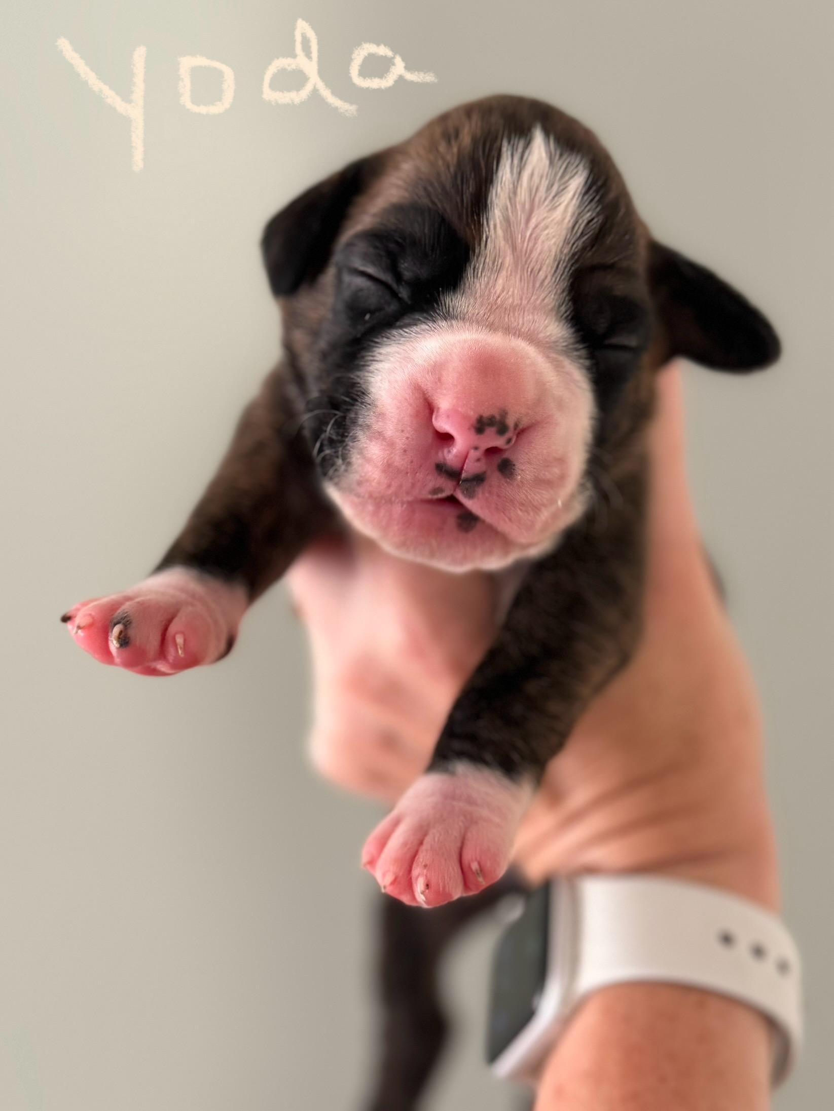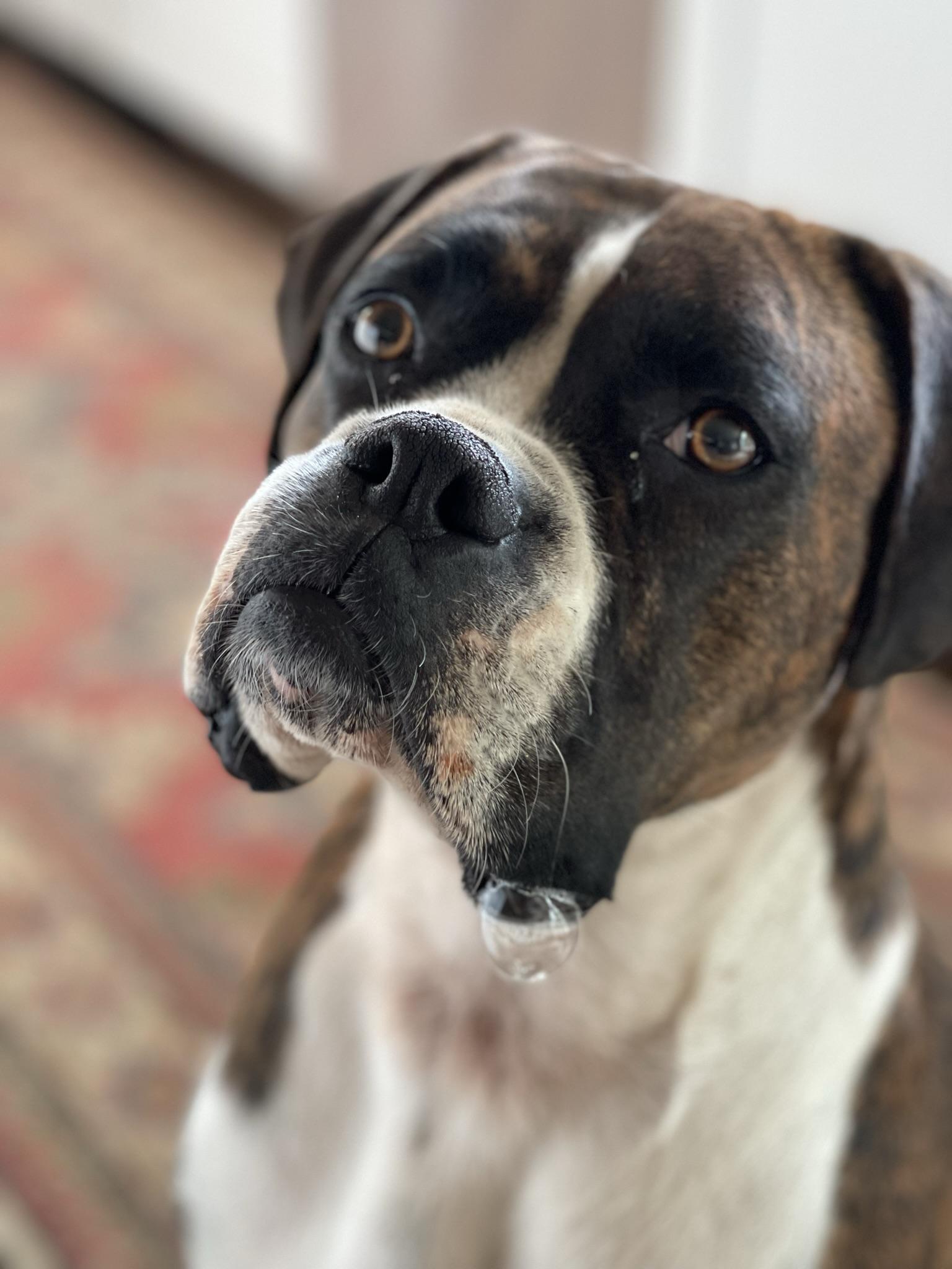 Juniper is a female Boxer. Carefully selected as a great representative of her breed, Molly decided to make her part of their program. Molly has passed Good Dog’s screening process, which involved a review of their breeding practices, environment, and the mental and physical health of their dogs.