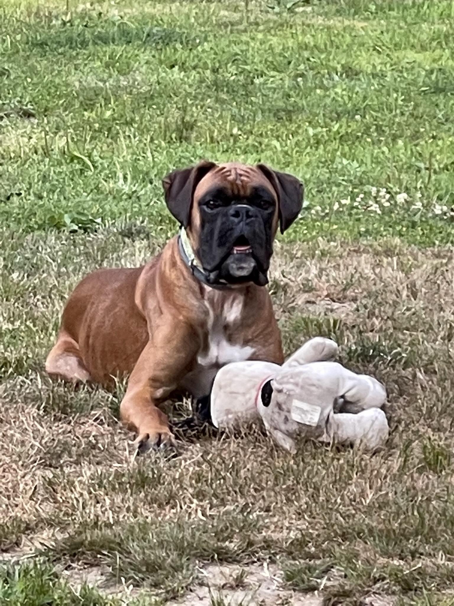 I'm Molly F., the breeder behind Buzzard's Bay Boxers located in Massachusetts. Our Boxer pups are home-raised. We put a lot of care into socializing them so they can transition easily into their new lives. We cherish each of our dogs and puppies, and we do everything we can to make sure that they get the best lives possible. That includes everything from choosing healthy parents with good temperaments, to proper socialization and daily care, to placing them in loving homes with wonderful families. We strive to provide each of our puppies and their families with a truly positive experience!