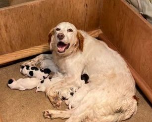 Doozy is a female English Setter. Carefully selected as a great representative of her breed, Walter decided to make her part of their program. Walter has passed Good Dog’s screening process, which involved a review of their breeding practices, environment, and the mental and physical health of their dogs.