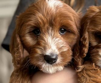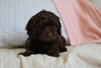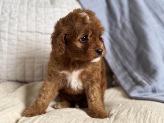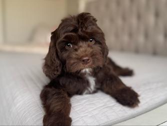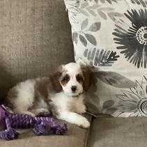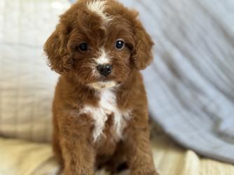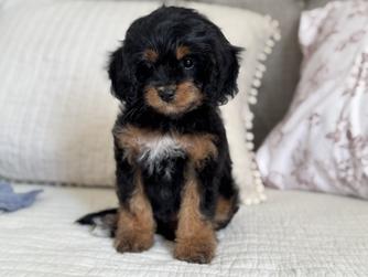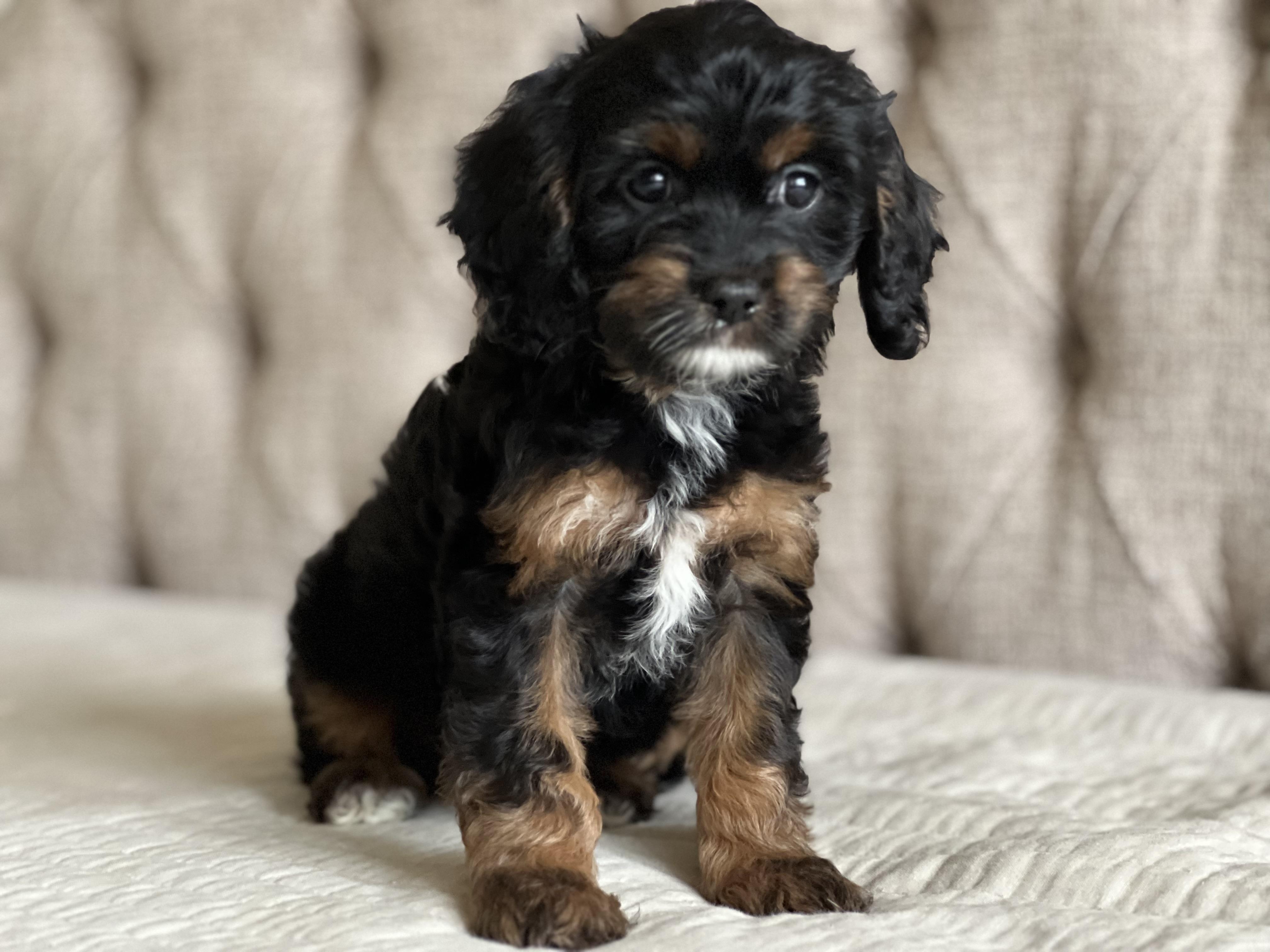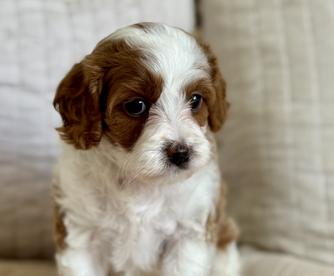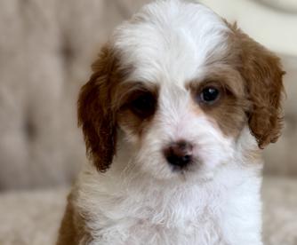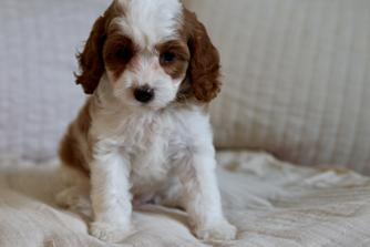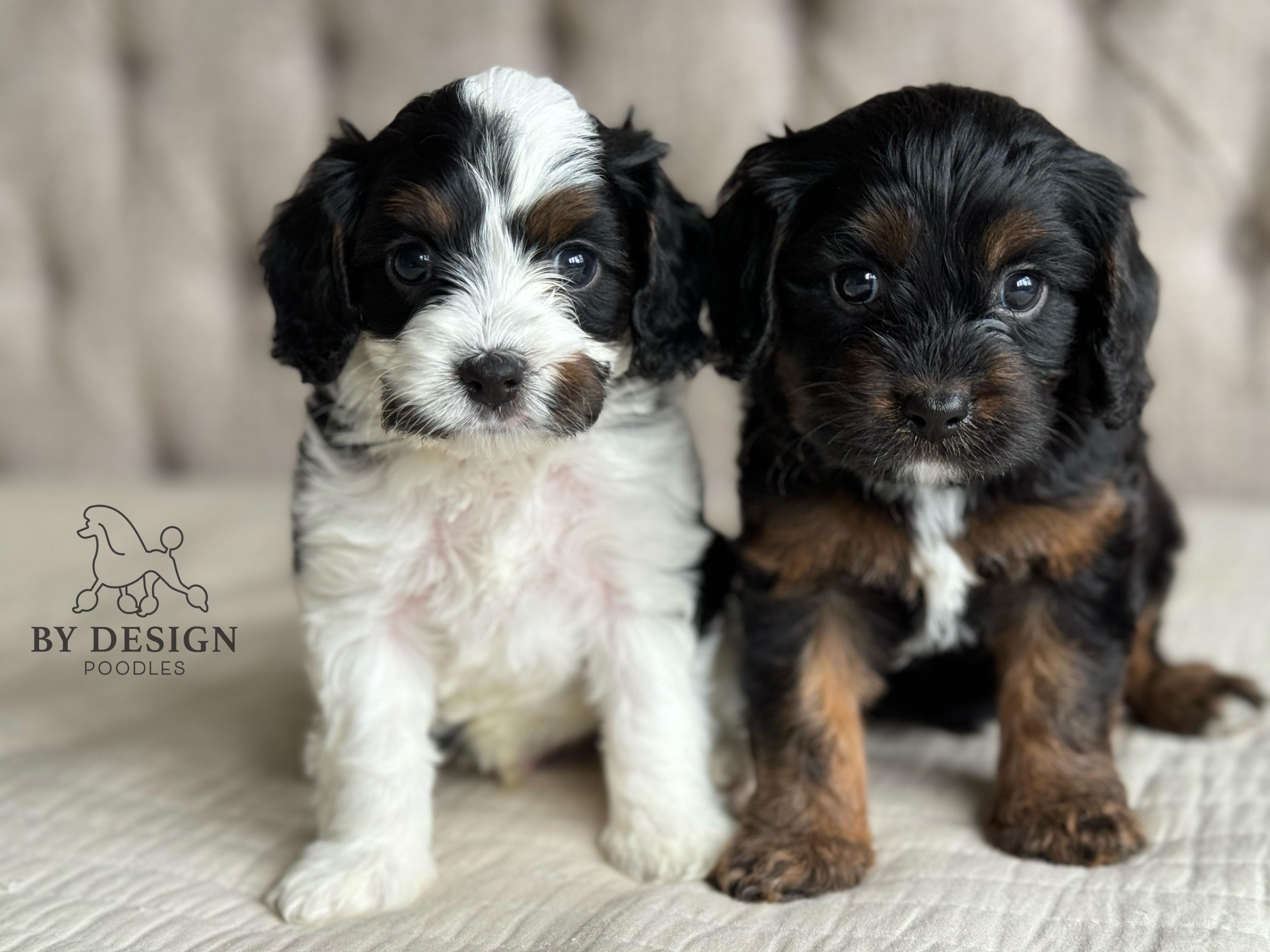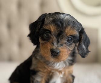 Our Cavapoo puppies include tri-color, chocolate, red, blenheim, and black and tan. Colors will vary depending on the parent dogs.