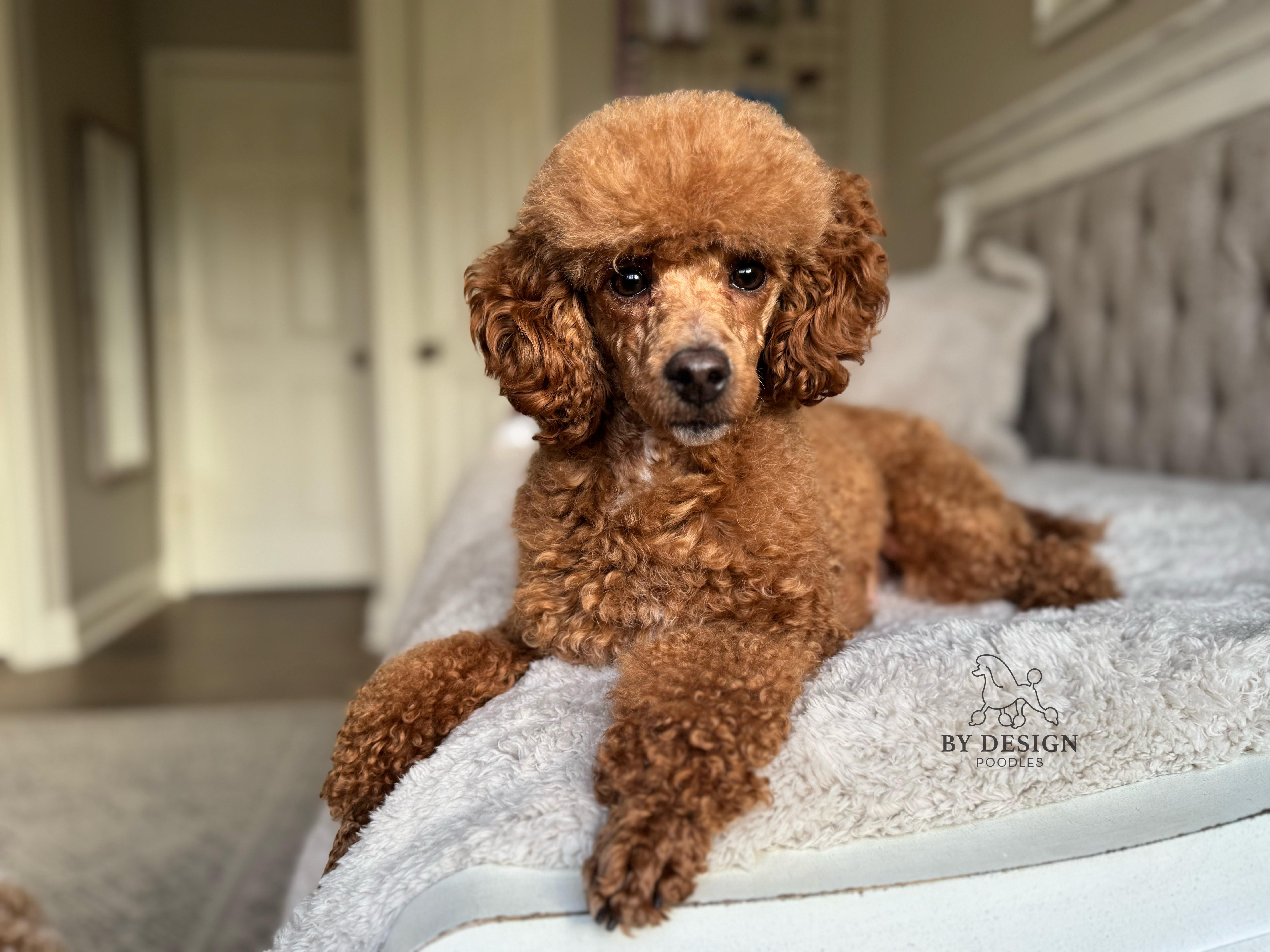 I looked into many breeders before choosing By Design Doodles. Jaime was very responsive to my questions, knowledgeable about the breed and continued to be supportive once we got Teddy home. You can tell Jaime is invested in each puppy and follows up to see how they are adjusting to their new home. I was curious about Teddy’s personality and demeanor before we got him and Jaime described him to a T. He is calm but curious, and loves to snuggle.