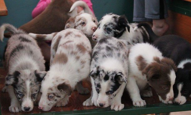 Our puppies include tri-color, blue merle, red merle, black, red, white and blue merle, white and red, and white and red merle. Colors will vary depending on the parent dogs.