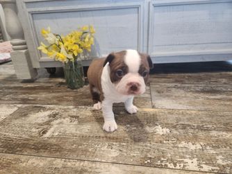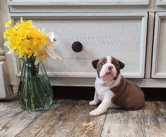 Rocky is a male Boston Terrier. Carefully selected as a great representative of his breed, Mary decided to make him part of their program. Mary has passed Good Dog’s screening process, which involved a review of their breeding practices, environment, and the mental and physical health of their dogs.