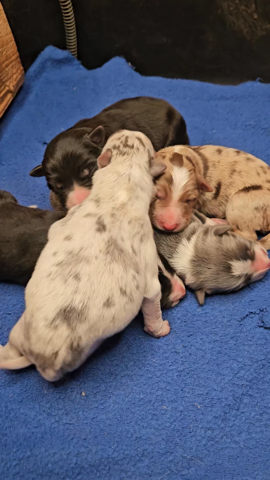 Our puppies include blue merle, red merle, black, blue, gold, lilac, red, saddleback sable, and slate. Colors will vary depending on the parent dogs.