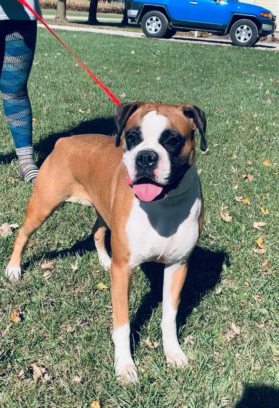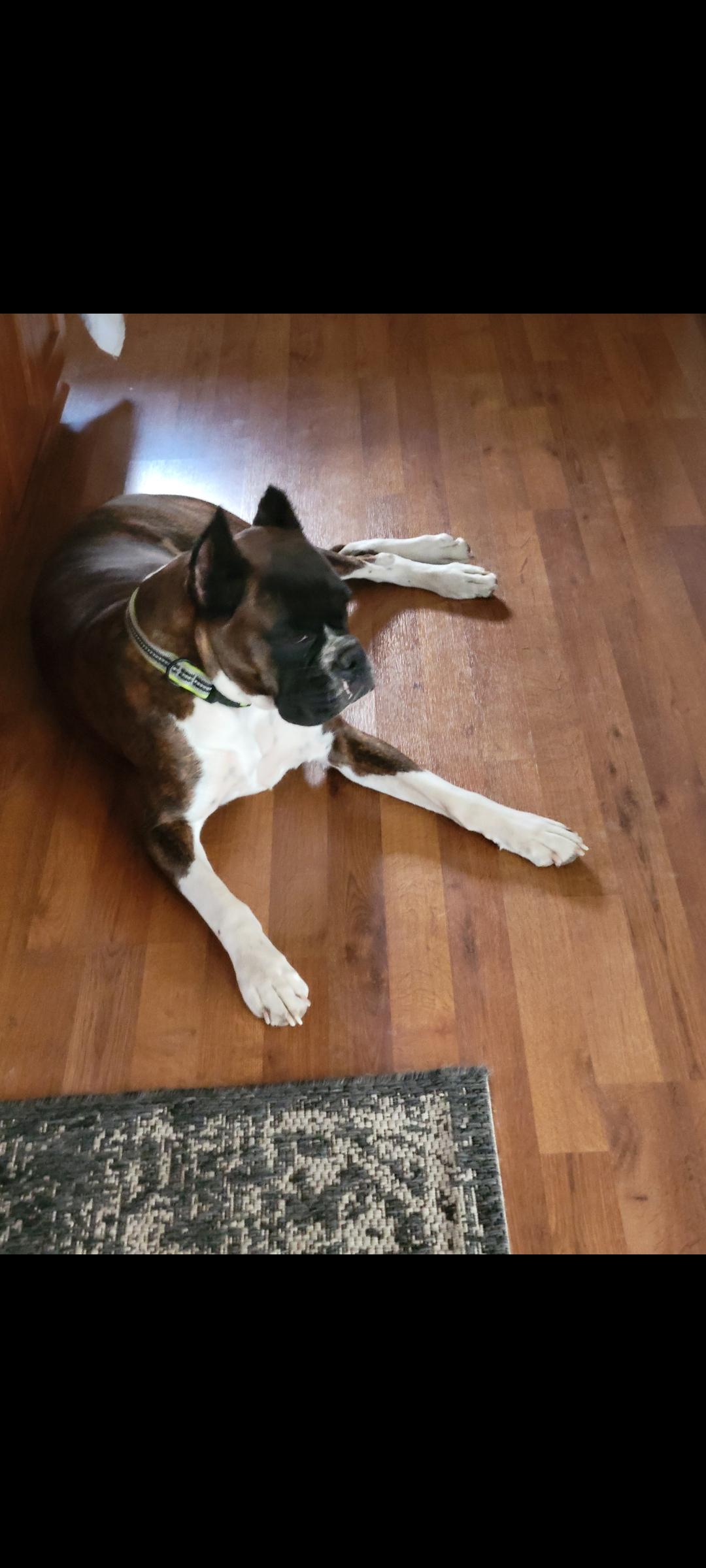 Sunny is a female Boxer. Carefully selected as a great representative of her breed, Cheri decided to make her part of their program. Cheri has passed Good Dog’s screening process, which involved a review of their breeding practices, environment, and the mental and physical health of their dogs.