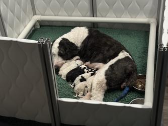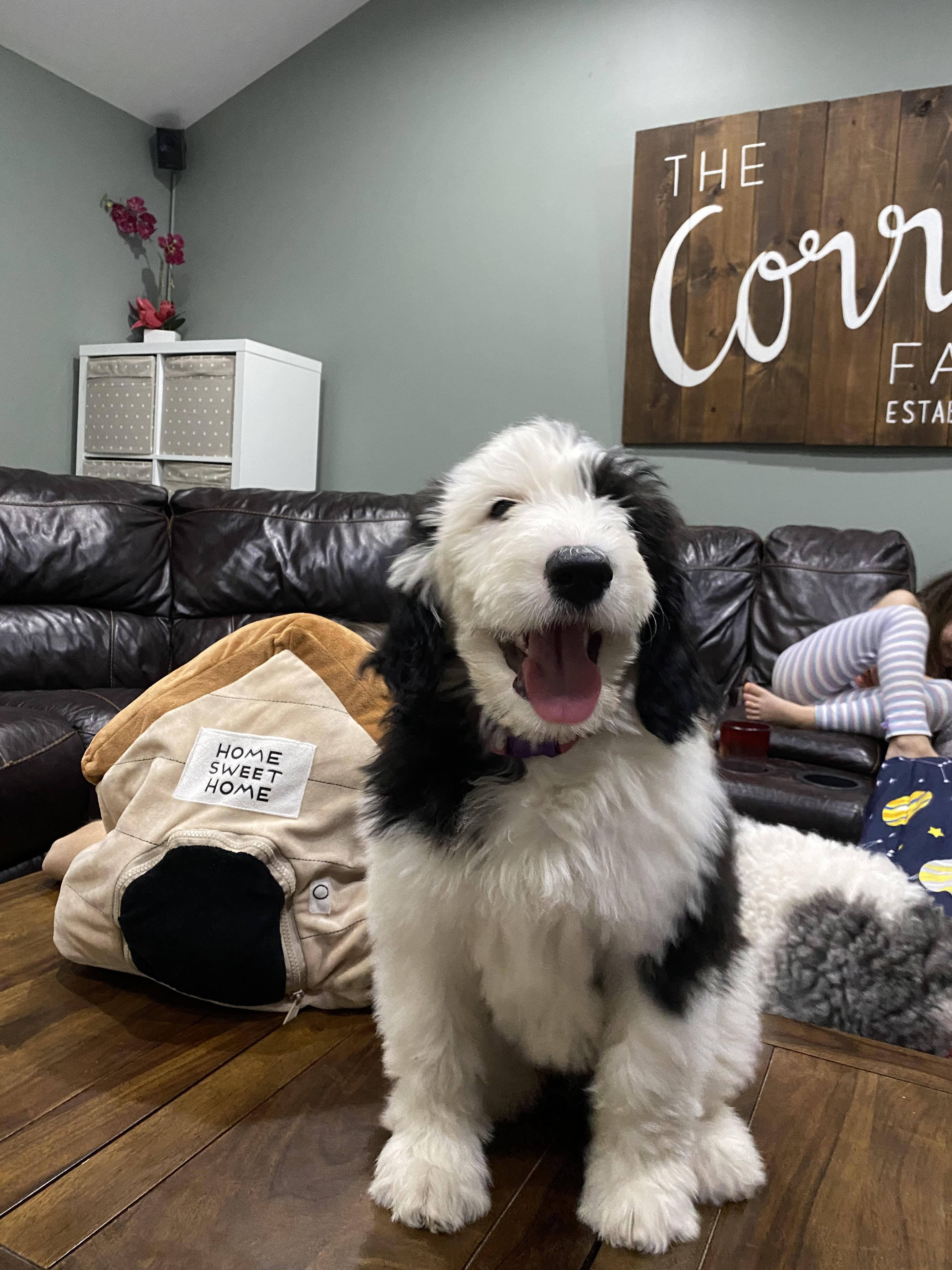 On Christmas Eve 2018, we welcomed Luna, our Sheepadoodle, to our family. We love our Luna so much. Luna has a great temperament and she is the perfect combination of sweet and goofy. As a family, we decided to share the love and are now breeding F1B medium sized Sheepadoodles. We have now added Turbo to our family and he will be the "dad" of all the puppies.