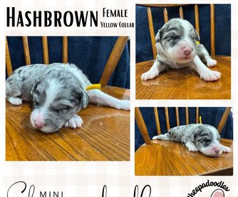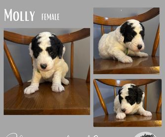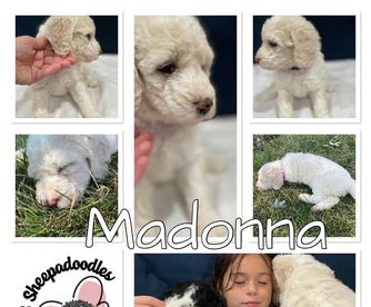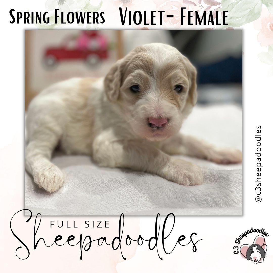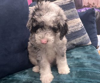 Violet is a mini F1 Sheepadoodle- she is sweet and loving!