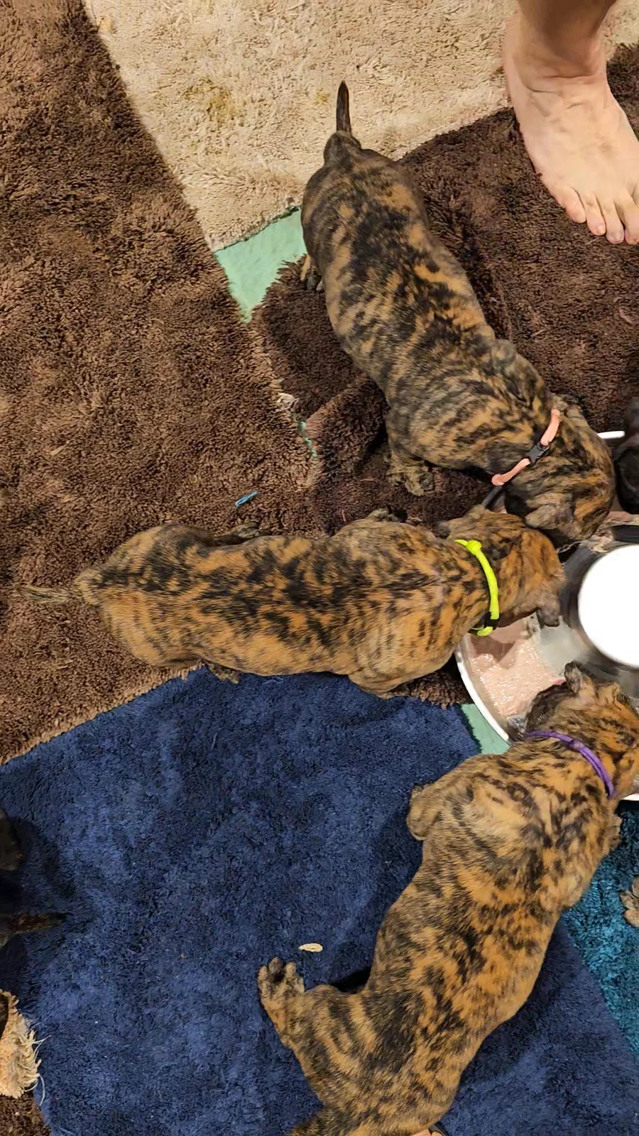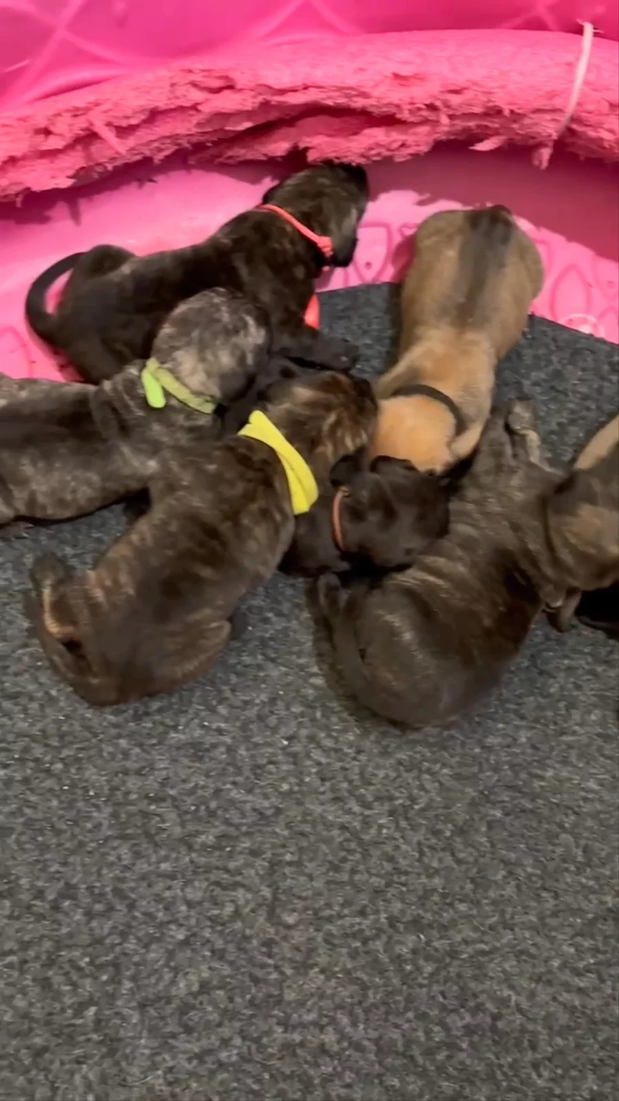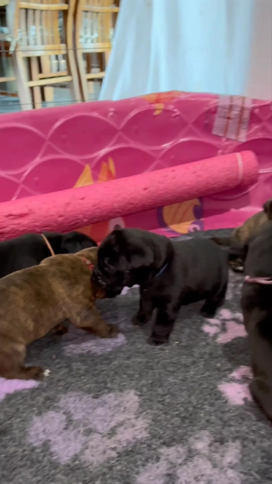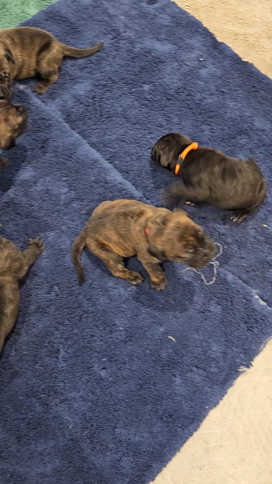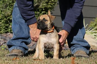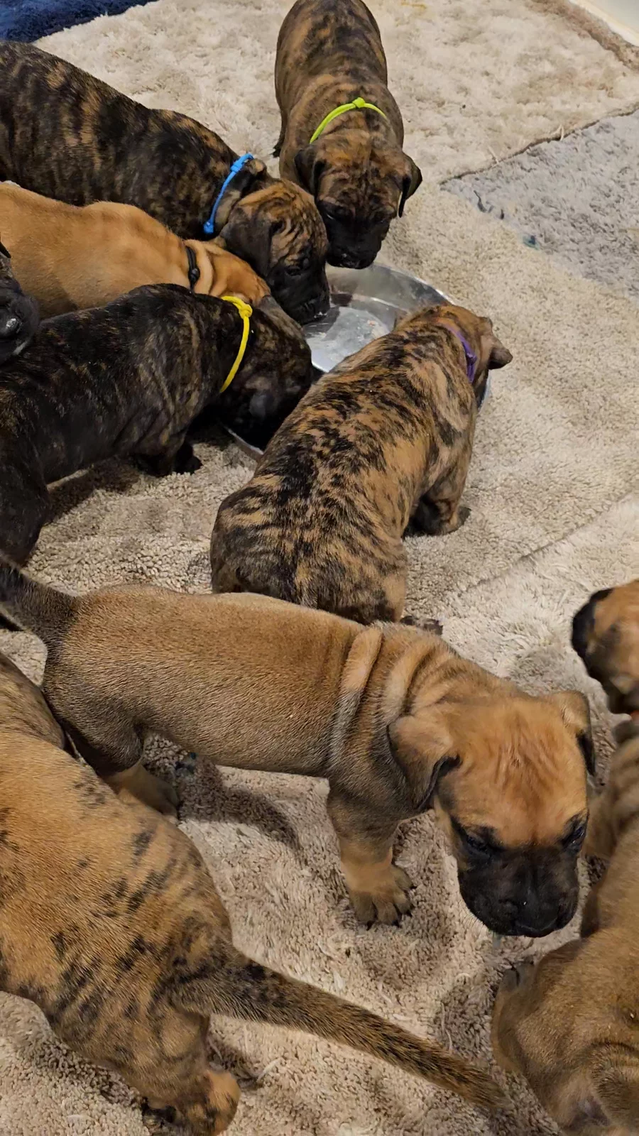 Our puppies include black, fawn, and tiger. Colors will vary depending on the parent dogs.
