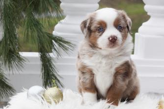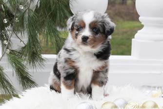 Working with Mary to bring my little red Merle Sage home was a wonderful experience. Mary is very caring with her puppies. They are part of the family, well socialized, and very happy healthy puppies.