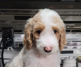 The puppies are whelped in the home, I introduce ENS the the first week of life, socialization starts at week three, as well as sound introduction, and grooming sensory with vibration of clippers, pad training. We do temperament testing on week six and continue these introductions, until puppy goes home. We work with people who want a service dog as well.