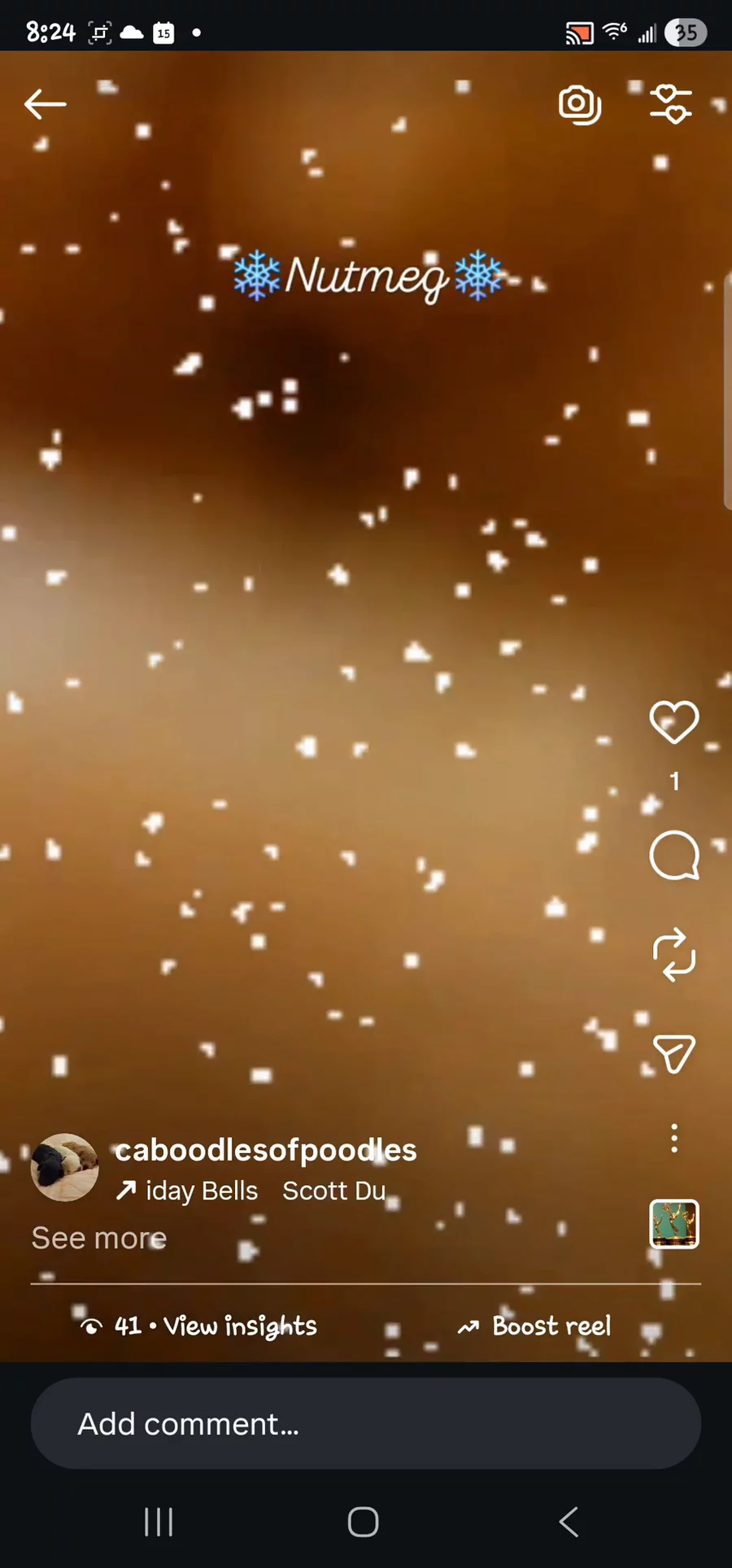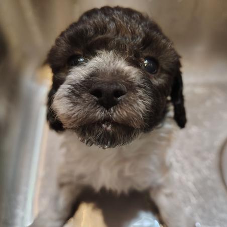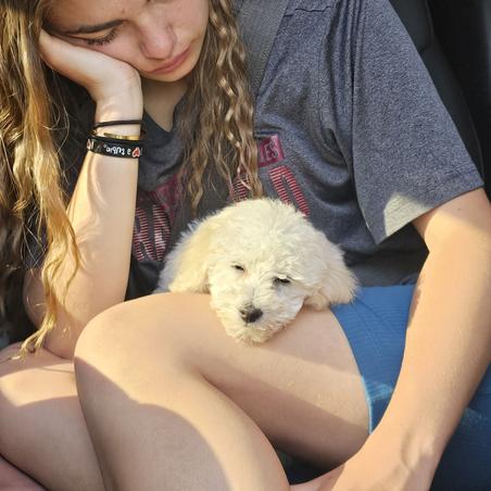 I had the best experience with Jean and Caboodles of Poodles. My new puppy I got from her when he was 3 months old. What I love the most is that this is the best poodle I have ever had for being fearless and sweet. He is calm and never shakes even going to the vet or groomer. And he is sweet and great around people. He is also very smart and is picking up the training quite well. I love him very much and I'm so happy to have gotten him from Jean.