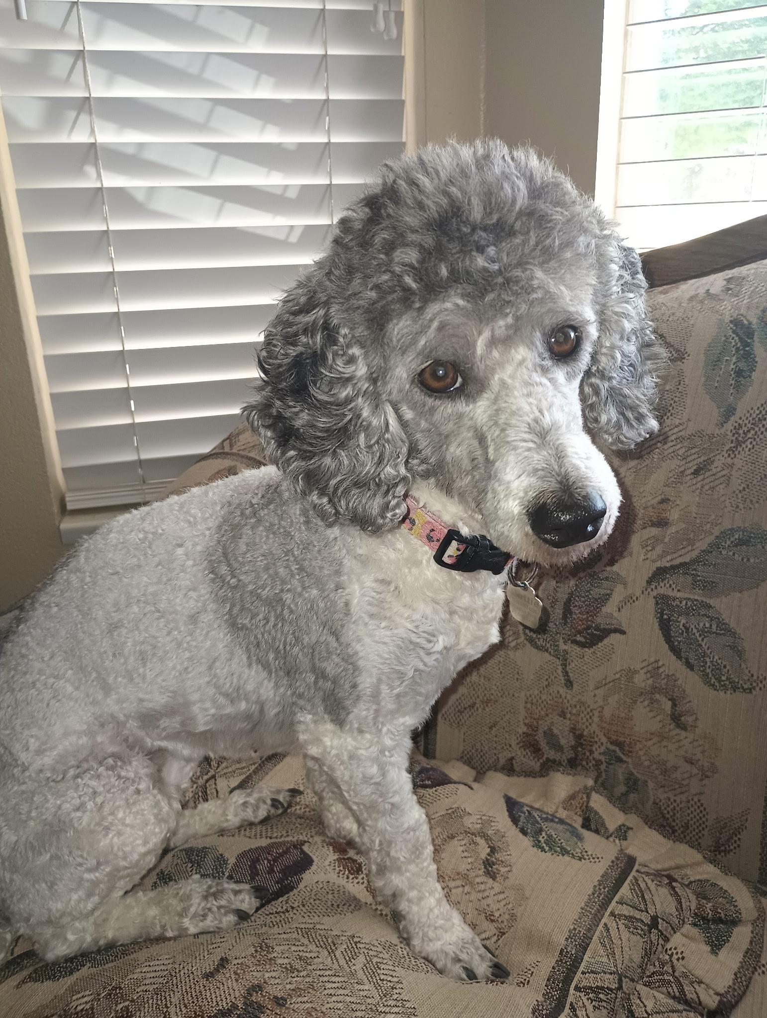 Peaches is a female Poodle. Carefully selected as a great representative of her breed, Jean decided to make her part of their program. Jean has passed Good Dog’s screening process, which involved a review of their breeding practices, environment, and the mental and physical health of their dogs.