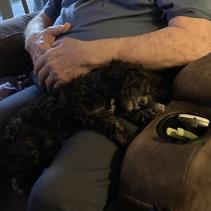 Rex is the sweetest family dog! He loves to snuggle anyone and even loves his new pups! He likes to be at the highest point he can get to, usually walking along the top of the couch.