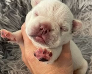 Snowball is a female French Bulldog. Carefully selected as a great representative of her breed, Amber decided to make her part of their program. Amber has passed Good Dog’s screening process, which involved a review of their breeding practices, environment, and the mental and physical health of their dogs.