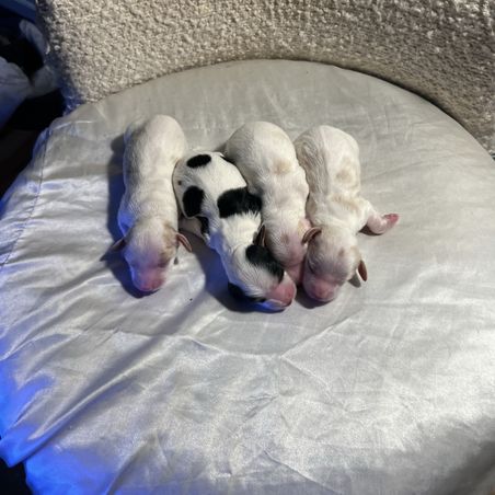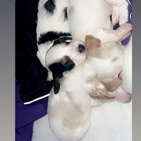 All of our pups leave with not only their FIRST round of shots but also the SECOND, which isn’t always typical. We also of course have vet checks and health checks/ guarantees. All pups also come with microchips, apple airtag and goodie bag to go.