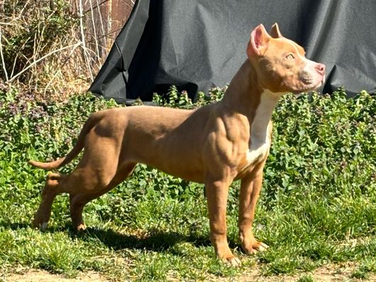 Quasar is a female American Bully. Carefully selected as a great representative of her breed, Cadmium decided to make her part of their program. Cadmium has passed Good Dog’s screening process, which involved a review of their breeding practices, environment, and the mental and physical health of their dogs.