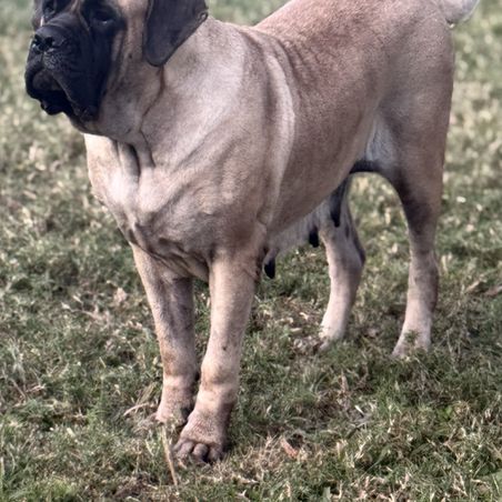 Athena is amazing and the sweetest mastiff you’ll ever meet. She is loving in nature, healthy, beautiful, Gentle, and also protective. She is everything a mastiff is supposed to be! Athena also has all her health testing done, with excellent hips. Normal heart, thyroid, elbows,and patellas. Athena also has DNA testing Which gave negative, non-carrier results for PRA, cataracts, HUU/HU, DM, and more!