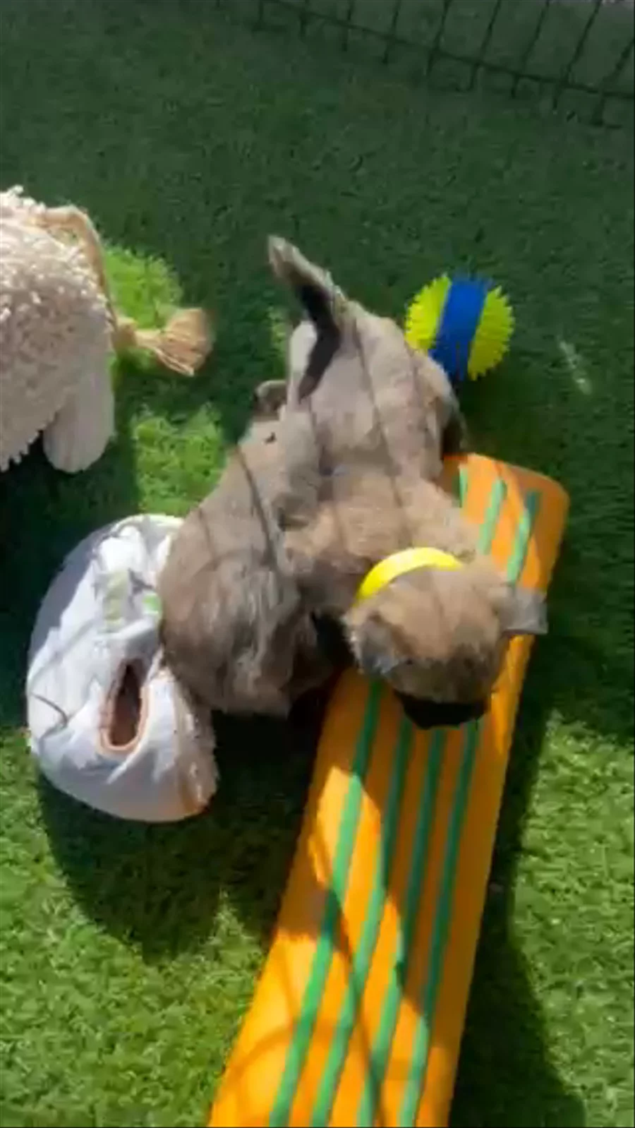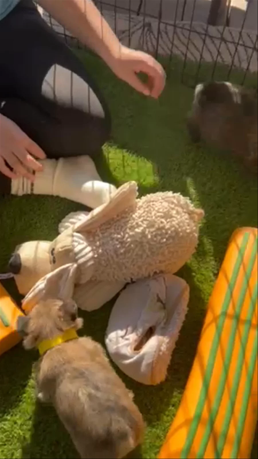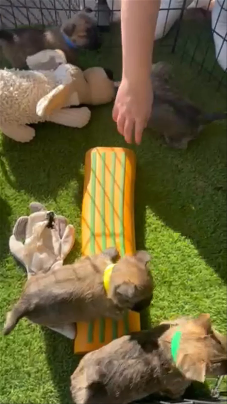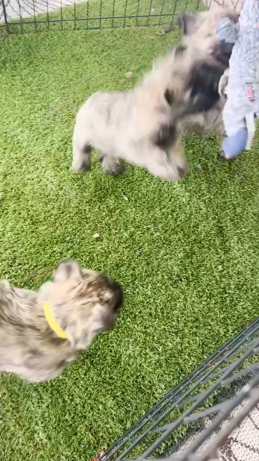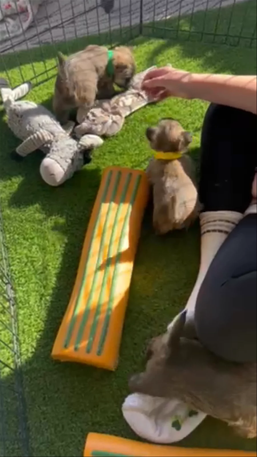 The sweet pups are just now exploring a little, trying out toys and making the fun little “ raccoon sounds” Enjoy!