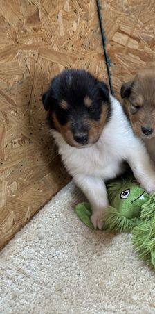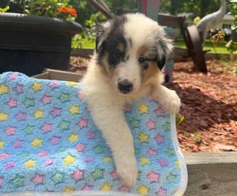 Our puppies include black white and tan, sable merle and white, sable and white, and blue merle white and tan. Colors will vary depending on the parent dogs.
