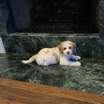 Theo is a happy, easygoing F1 Goldendoodle who’s all about his family. He’s the kind of dog who gets along with every cat and dog he meets, always making new friends. He has a soft spot for his cat brother, Burt, and they’re often found curled up together for a nap. At night, Theo loves nothing more than hopping into bed with his human mom and dad, where he’s happiest snuggled up close. He’s a true bundle of joy and love, making life a little brighter for everyone around him.