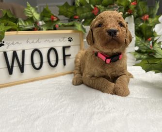 Burreaux is a male Goldendoodle. Carefully selected as a great representative of his breed, Monica decided to make him part of their program. Monica has passed Good Dog’s screening process, which involved a review of their breeding practices, environment, and the mental and physical health of their dogs.