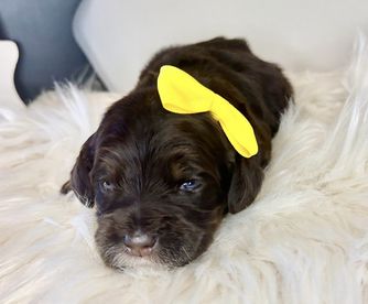 File' is a female Australian Labradoodle. Carefully selected as a great representative of her breed, Amanda decided to make her part of their program. Amanda has passed Good Dog’s screening process, which involved a review of their breeding practices, environment, and the mental and physical health of their dogs.