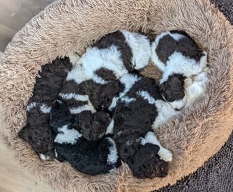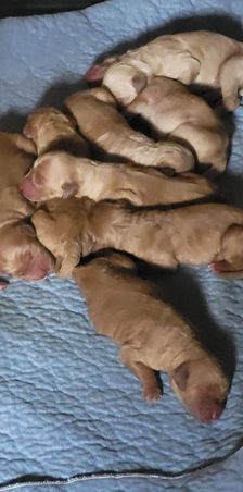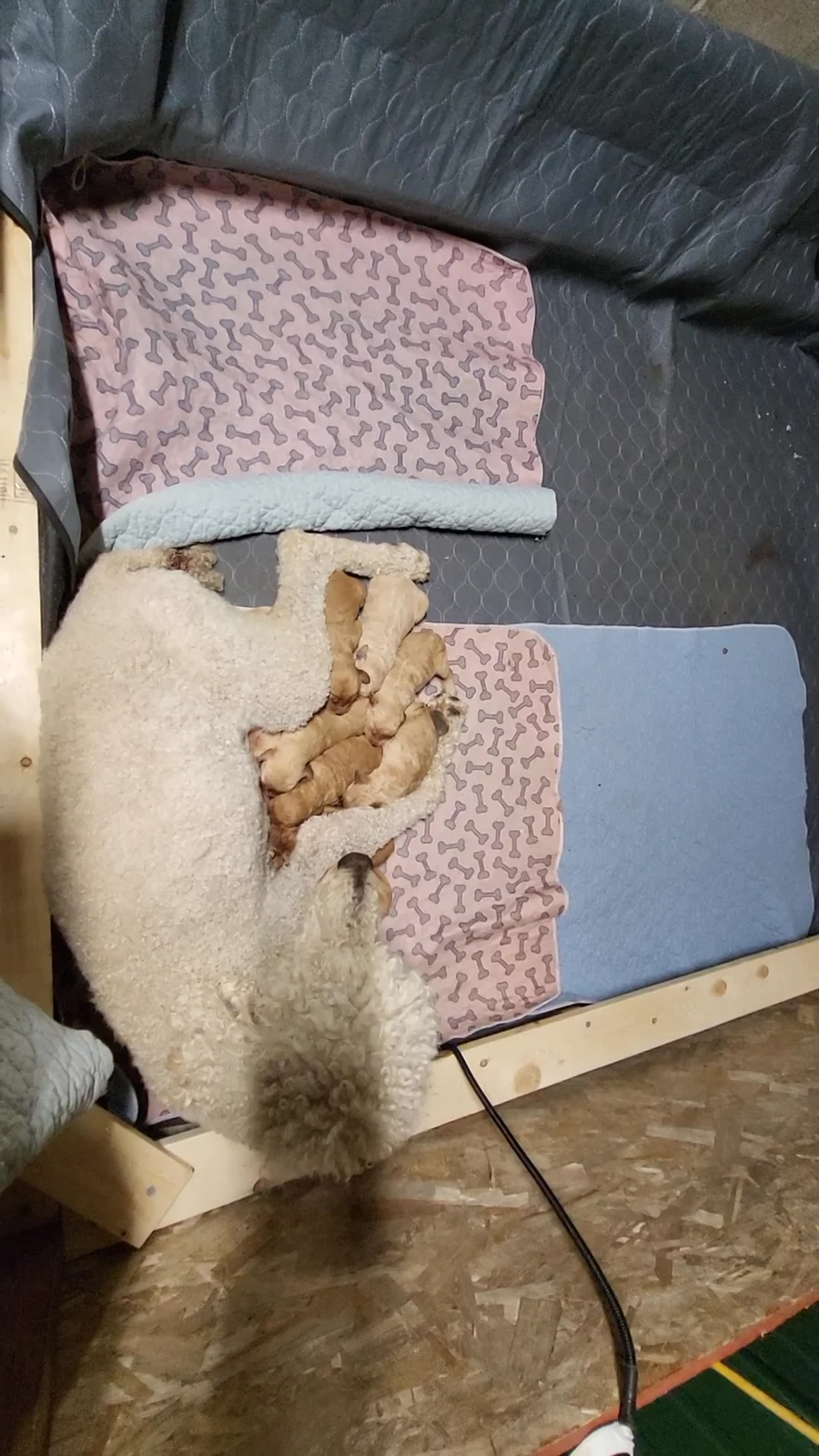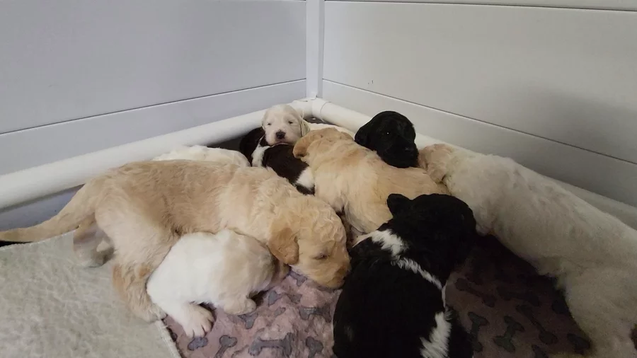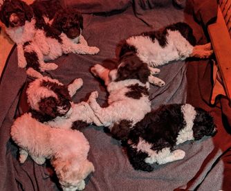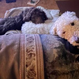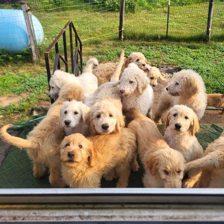I'm Cheryl B., the breeder behind Caldron Falls Doodles and Poodles located in Athelstane, WI. Hi my name is Cheryl and I'm the breeder behind Caldron Falls Doodles And Poodles. I've been breeding for 30+ years and always had a love for all animals since I can remember. Growing up around many animals including puppies of course, inspired me as to where I am today. I had a hobby farm for 10 years and pretty much any animal you can think of. After starting out with our family pet Ginger(Labrador Retriever) (many moons ago) and eventually moving on to Teddy Bears and German shorthairs. I retired my dogs to live out there life. All lived (total 6 ) between 16 and 17.4 years and my last passing away at the ripe old age of 17.5 years. In 2018 I purchased my first standard poodle. I've always thought they were such a beautiful regal looking dog. I love the fact that theirs no shedding and on top of that obedient, easy to train & unbelievably smart. My other half lost his Labrador of 16 years and decided after a couple of years of Mo's passing to purchase another. Mojo 2 . Labrador retrievers are excellent dogs in every way, just not a fan of shedding. And that's where the labradoodles came into play. We only planned on breeding one litter but when the litter came I realized how much I missed breeding and puppies ( oh those puppies) and decided to get back into it. Combining the traits of a Labrador with the Poodle make the most amazing puppies and that's when I fell in love with the labradoodle and decided to move forward breeding doodles and poodles. I take great pride in my adult dogs making sure they are all tested & healthy so as to produce the best quality pups. I do not kennel my dogs. Instead I have a large dog house 14x16 equipped with heat, air conditioning and big futon. Along with that I have an area for welping and puppies stay in there for the f 1st few weeks. They have all together around 13,000 sq ft of run space where they can go out as they please. They should be able play and run and just be a dogs is my belief. They are all exercised daily and have a great spoiled life. I take great pride in the work of raising healthy, socialized confident puppies. They are raised in my home with utmost care . I personally oversee their vaccinations, vet care & upbringing before they are adopted. But it all starts with healthy moms & dads. 1st & foremost my females are bred and once they reach 4 litters they are retired. People often look at only the price and think the price is so expensive. You have to look at the whole picture and that starts with your breeding females and males. They have to be kept healthy also. Vetting, UTD on yearly shots, tick & heartworm meds, testing hips, eyes, dna, then there's a place you have to house these dogs, fencing, food, treats, toys and care in general is very costly. Caring for 10 dogs the cost is immense. But I do this because I want to produce a HEALTHY puppy. Then there's also never ending hours, sleepless nights, and loss . To loose a puppy causes great heartache and it's very trying. Your wondering what you could of did or didn't do. It takes it's toll. But loss is part of it and that's the most difficult when it does happen. On the flip side there's nothing better than raising that pup, finding the right people (which can be tricky) and see the faces on these people when they come to pick that puppy up and the joy it brings makes it all worth it. This is not an easy thing because the short time I have them I get attached but my job is to build the foundation then hand them over and hope I made the right decision entrusting them to a stranger which is why it's important for me to get to know all my future buyers. I've had some truly amazing experiences from all this which I'll cherish the rest of my life. This is a very demanding job yet rewarding and I feel I'm very lucky to be able to experience this in my lifetime and do what I love to do. So with that, it's my goal to give you a forever friend and the best way to do that is to give your future dog a great start in life which is what I provide. My greatest hope is that all pups are placed with great families and have a long, healthy and happy life.