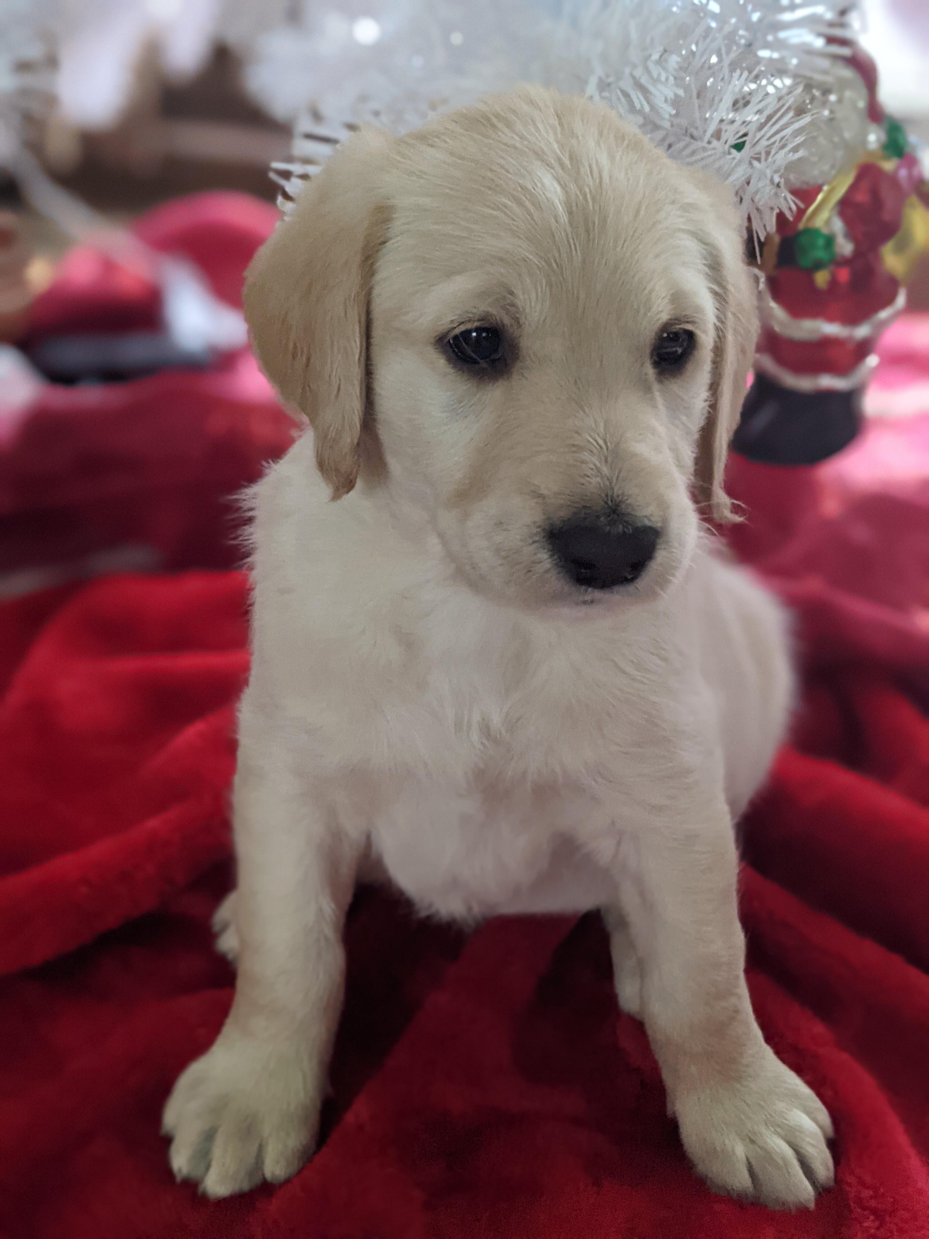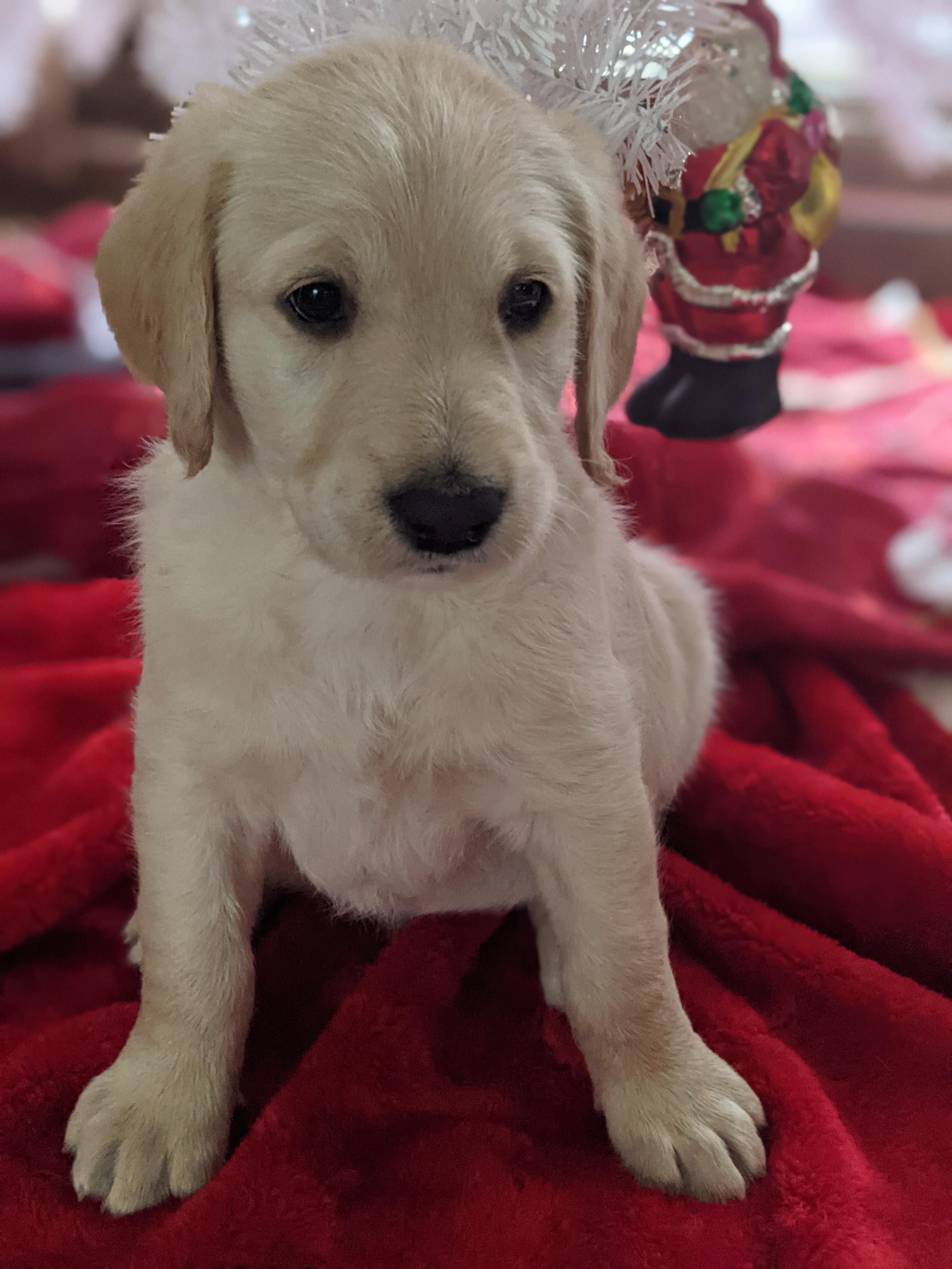 Our Goldendoodle puppies are red. Labradoodle puppies include red, gold, apricot, cream, chalk, chocolate, black, and tri-color. Colors will vary depending on the parent dogs.