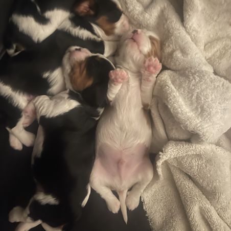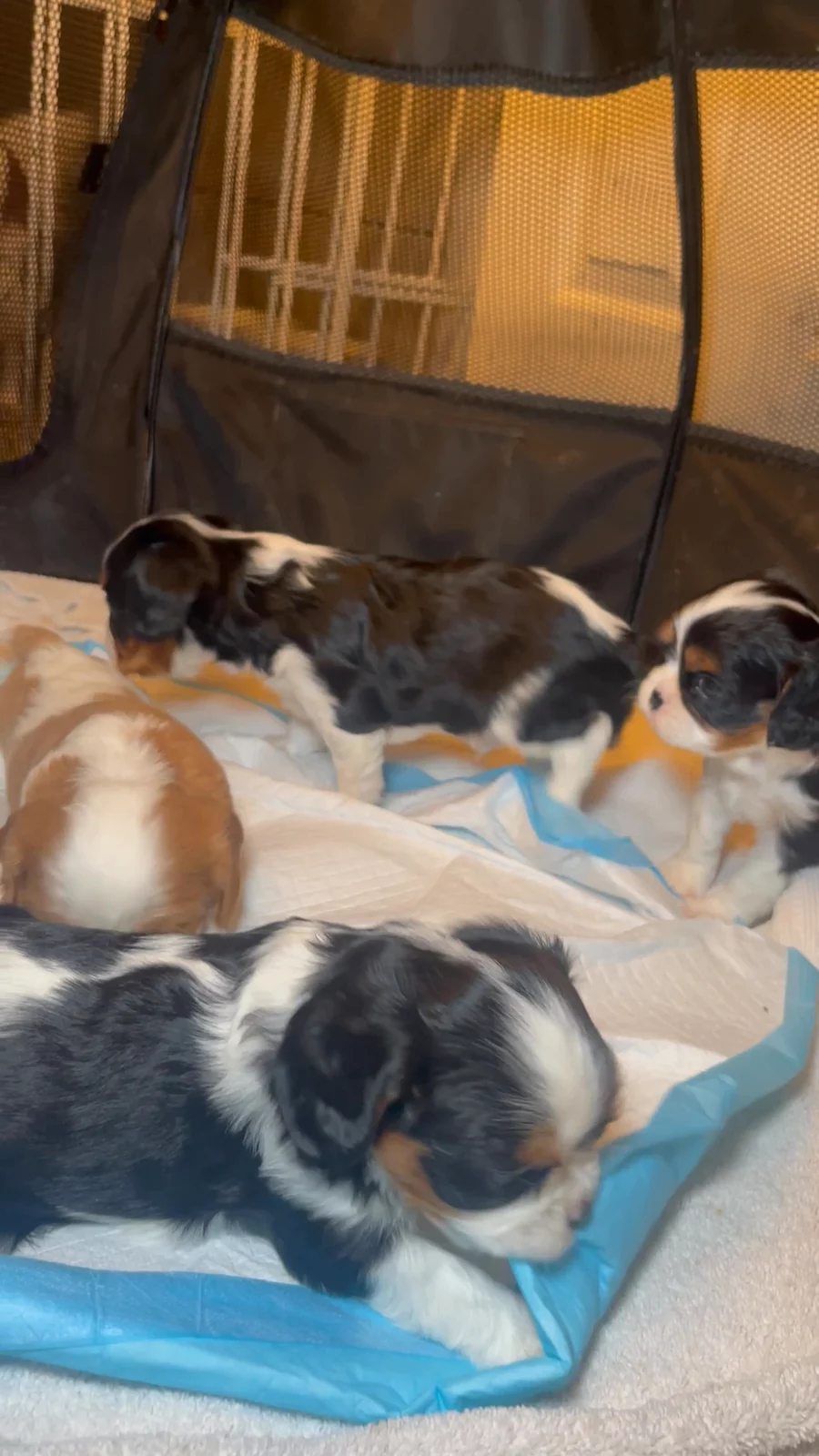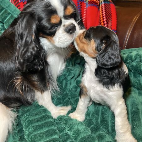 CaliCavaliers has a beautiful new litter of King Charles Cavaliers. 2 Males and 2 Females. Blenheim (Male) Tri-Color (Females and Male)